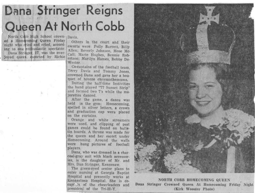 "Dana Stringer Reigns Queen at North Cobb," homecoming queen article, Save Acworth History Foundation collection, SC/A/003, Kennesaw State University Archives.