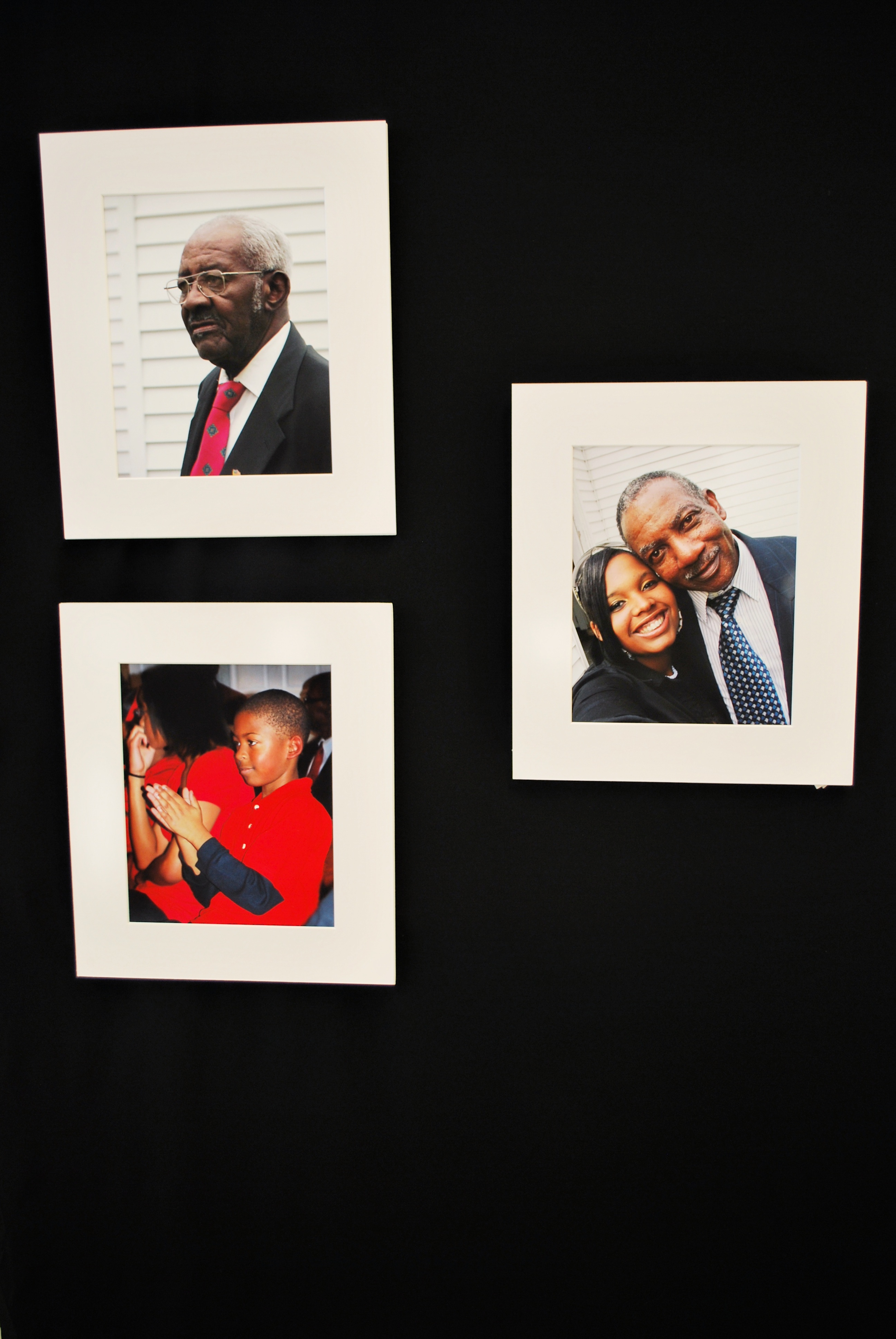 Pickens High School photography exhibit, Truman Roach (top left), David Hampton, Jr. (bottom left), and Georgia Bridges and Trenise Anderson (right), Mt. Calvary Baptist Church, Pickens County, Georgia, May 2010