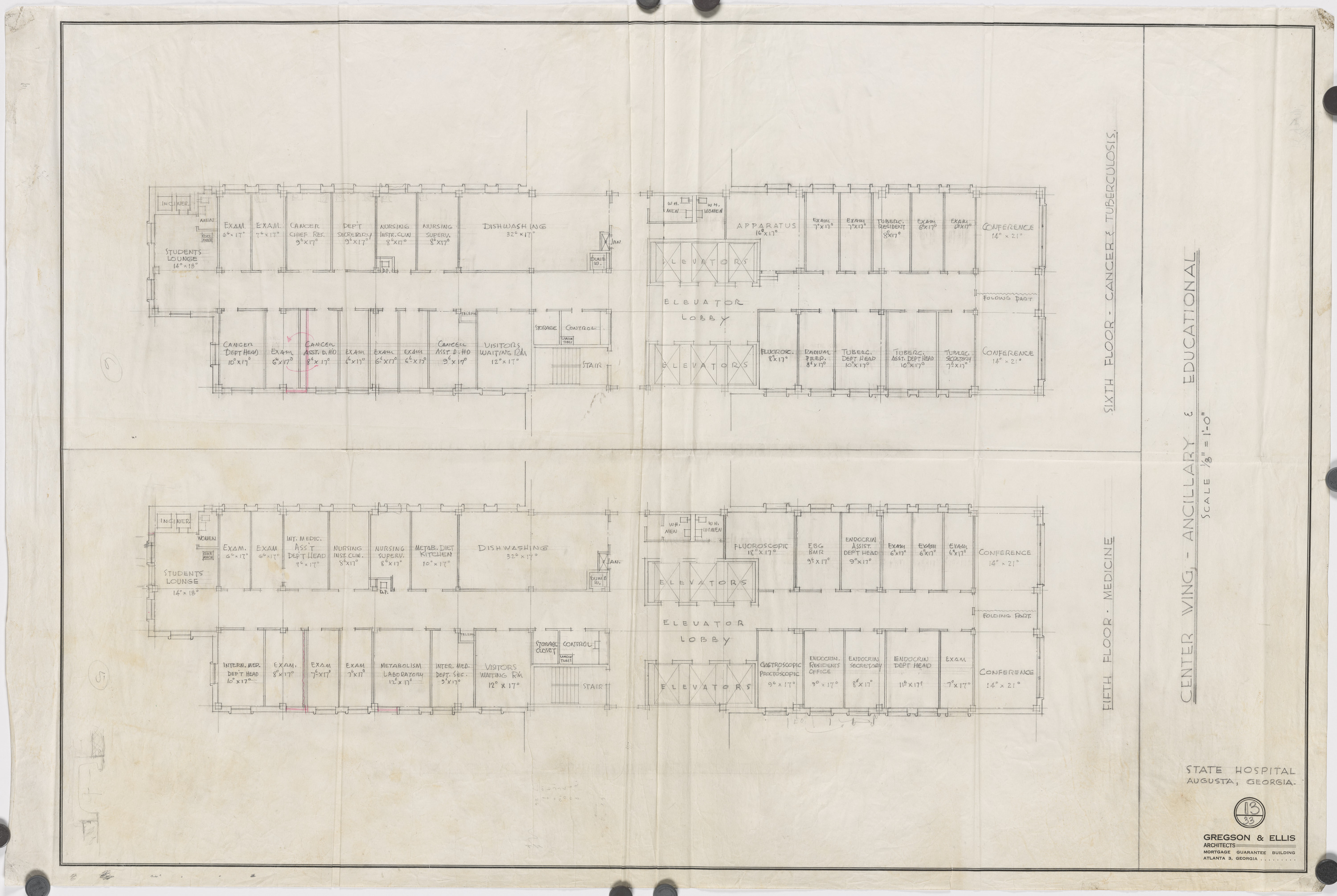 Augusta State Hospital Complex. Center wing ancillary and educational - fifth and sixth floors