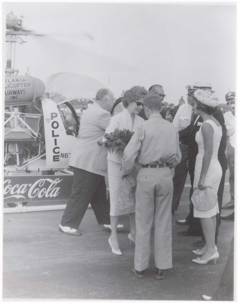 Actress Susan Hayward receives flowers at the opening of McCollum Aiport (Cobb County International Airport), September 4, 1960, Larry Brantley Thompson Collection, 2020, Kennesaw State University
