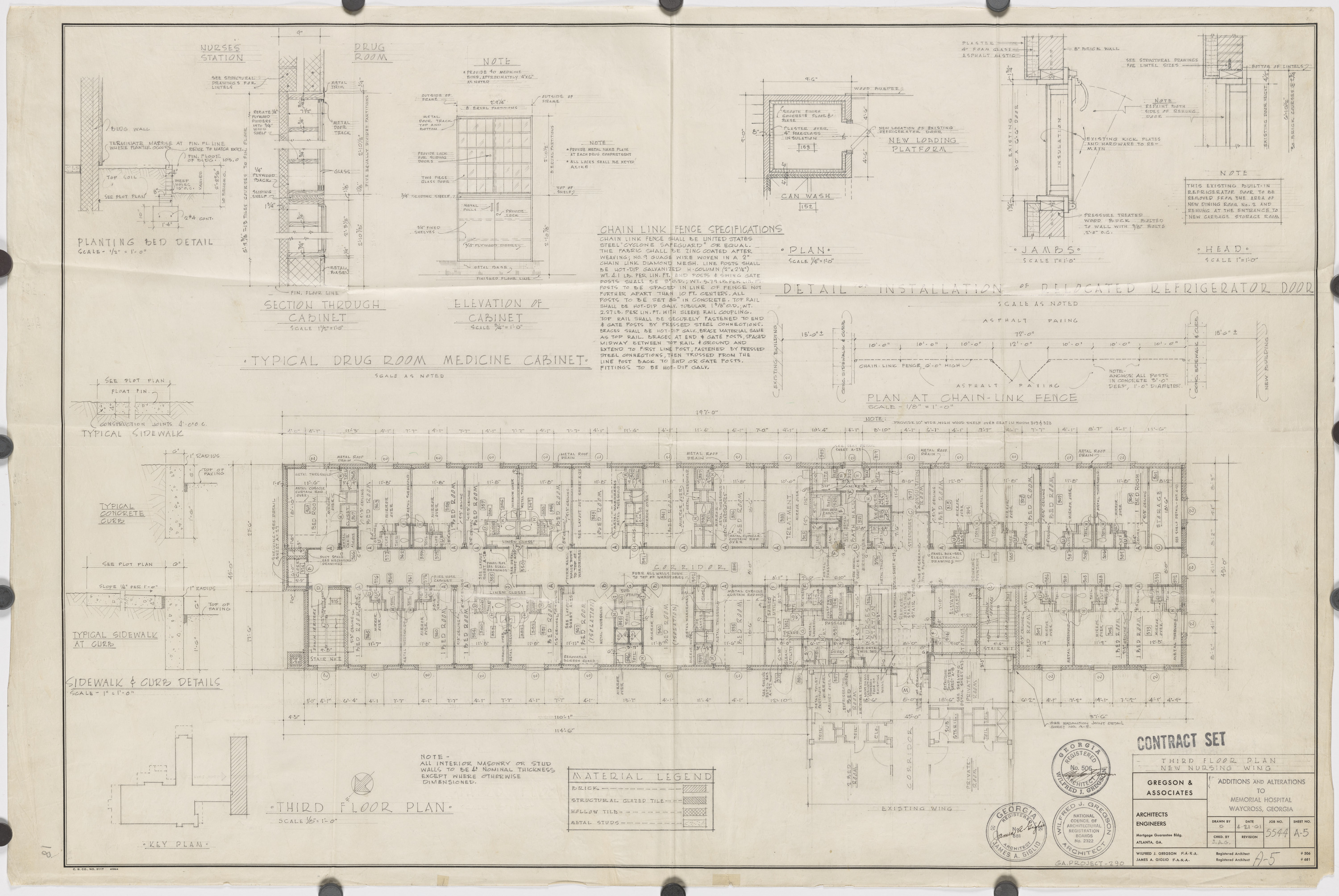 Memorial Hospital, Waycross, Georgia. Third floor plan - new nursing wing