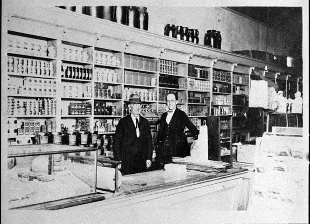 McMillan Brothers Mercantile Store, J. W. McMillan and his son George H. McMillan, 1928