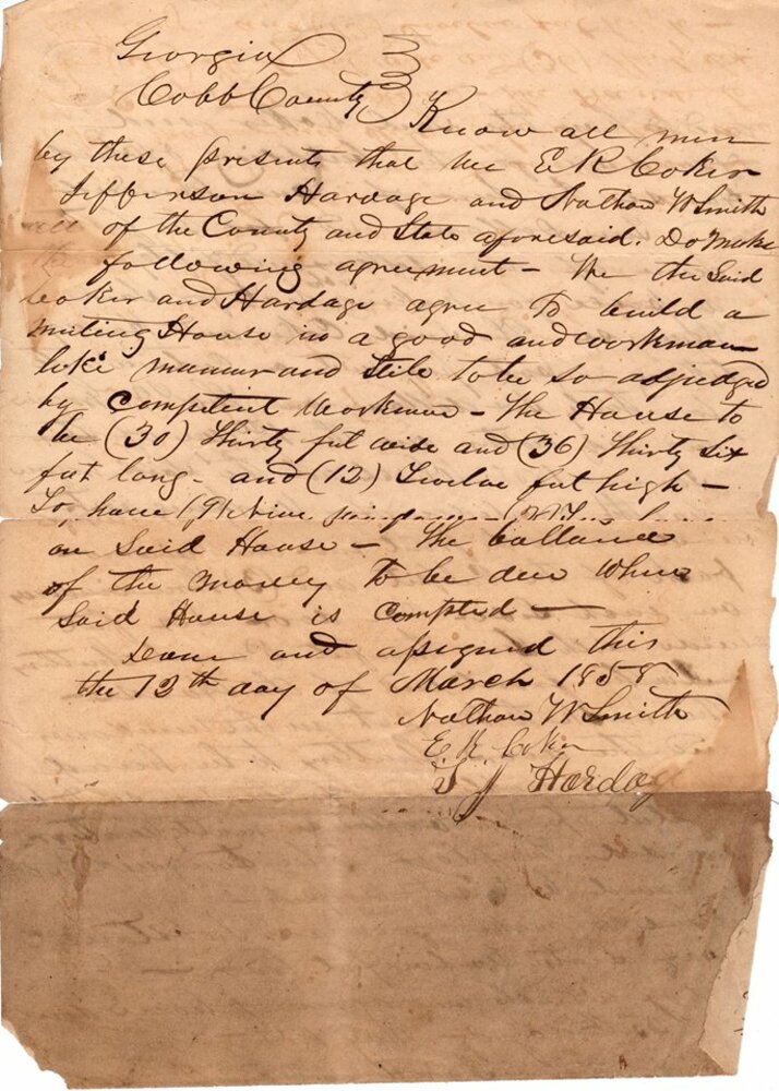 Acworth Christian Church, 1858-03-13, Save Acworth History Foundation collection, SC/A/003, Kennesaw State University Archives.