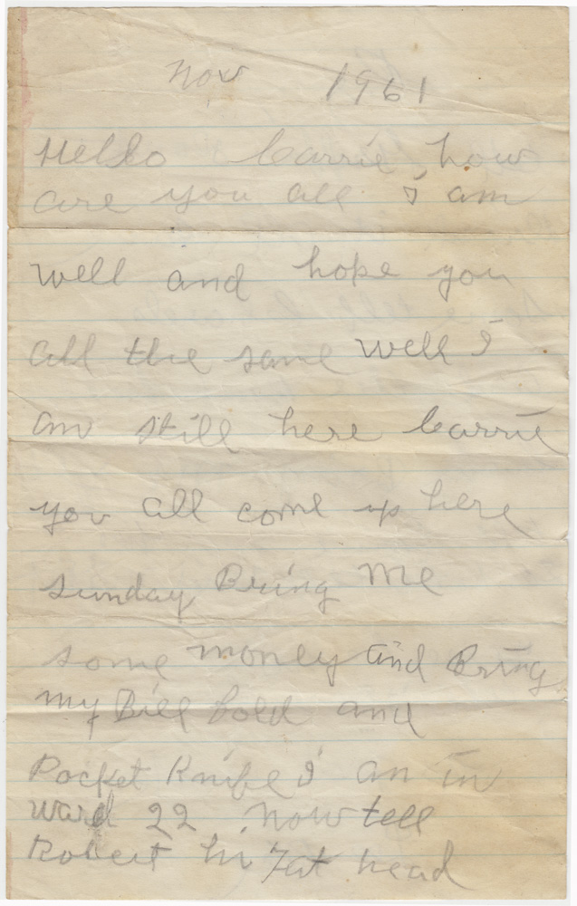 Letter from Lee Rice to Corrie Rice Griffin in Acworth, Georgia, November 1961, Historic Black Acworth Image Collection, 2020, Patton, Kennesaw State University