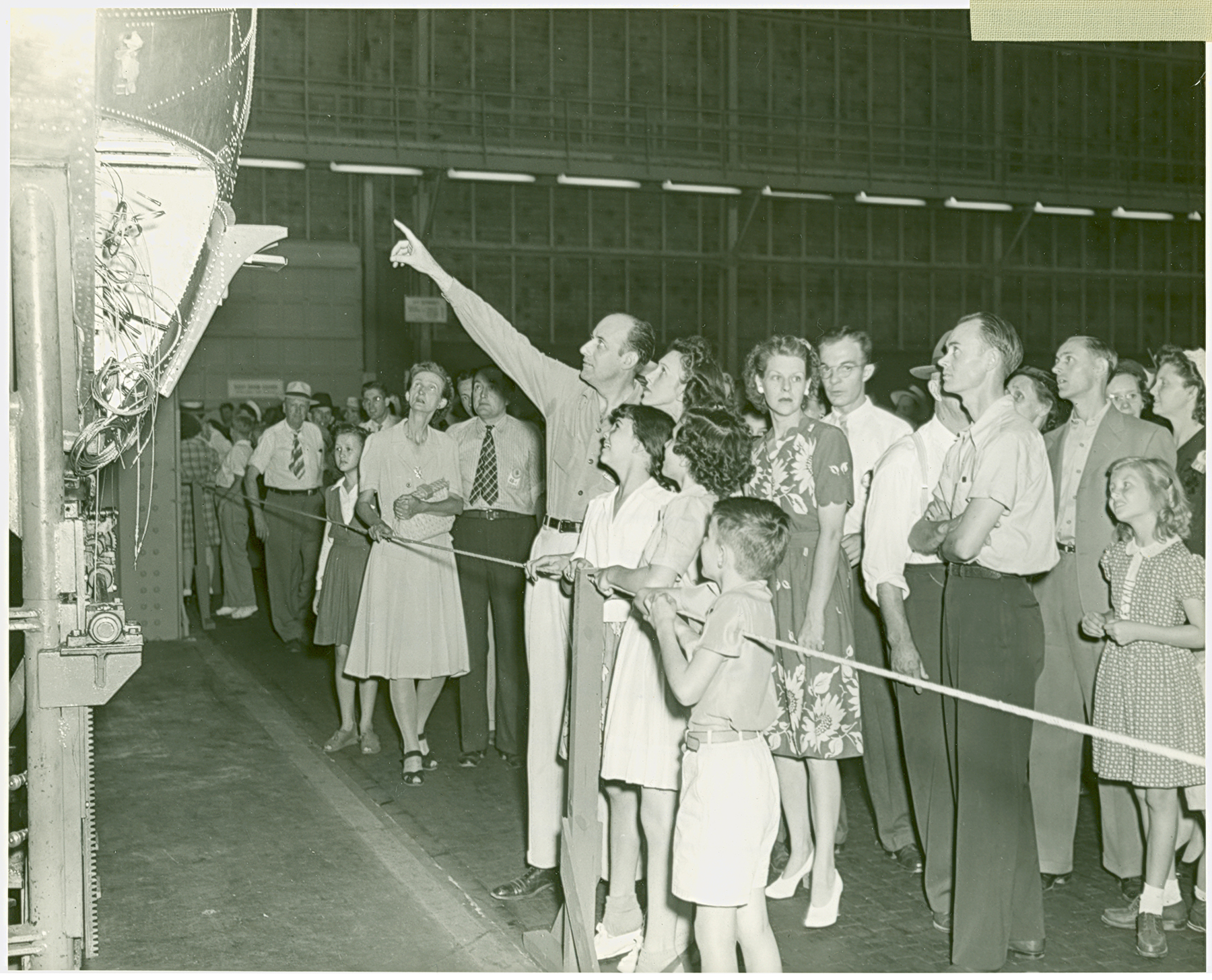 A Bell employee points out a detail to his family during a plant tour on Family Day.
