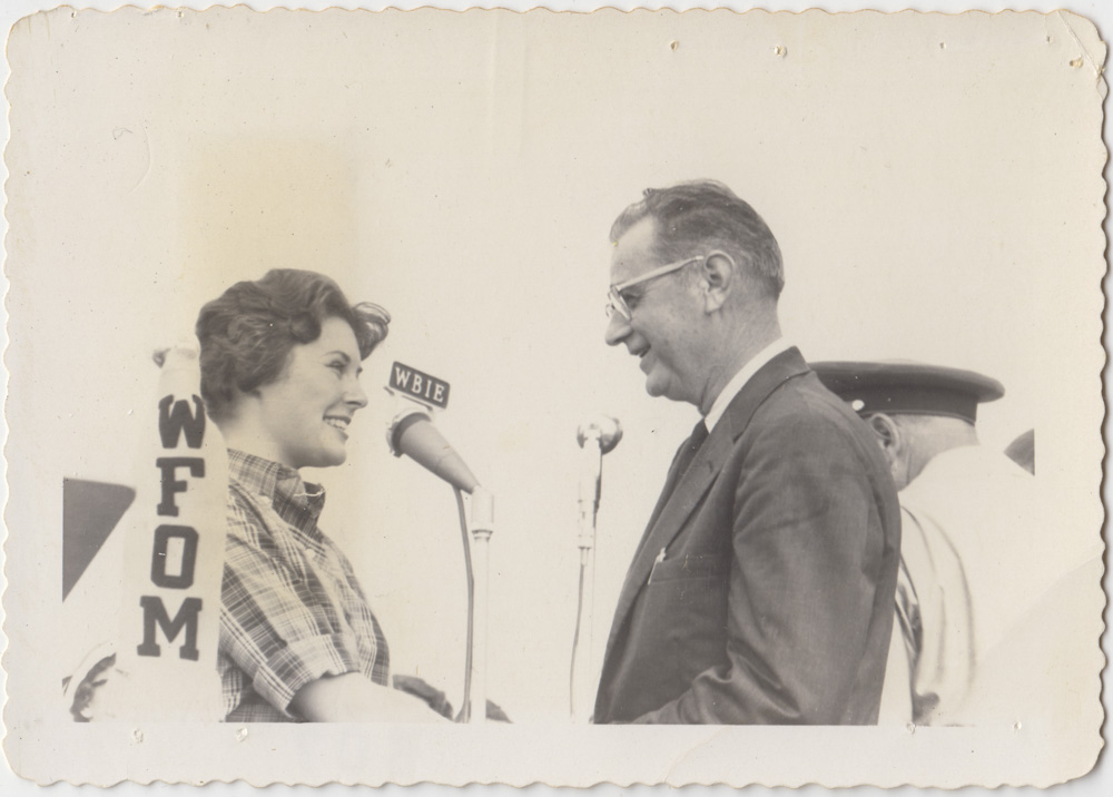 Jeanette Ardell, "Miss Cobb County," "Miss Georgia," "Miss Dixie," and Cobb County, Georgia, Commissioner Herbert Clay McCollum at the opening of McCollum Airport (Cobb County International Airport), September 4, 1960, Larry Brantley Thompson Collection, 2020, Kennesaw State University