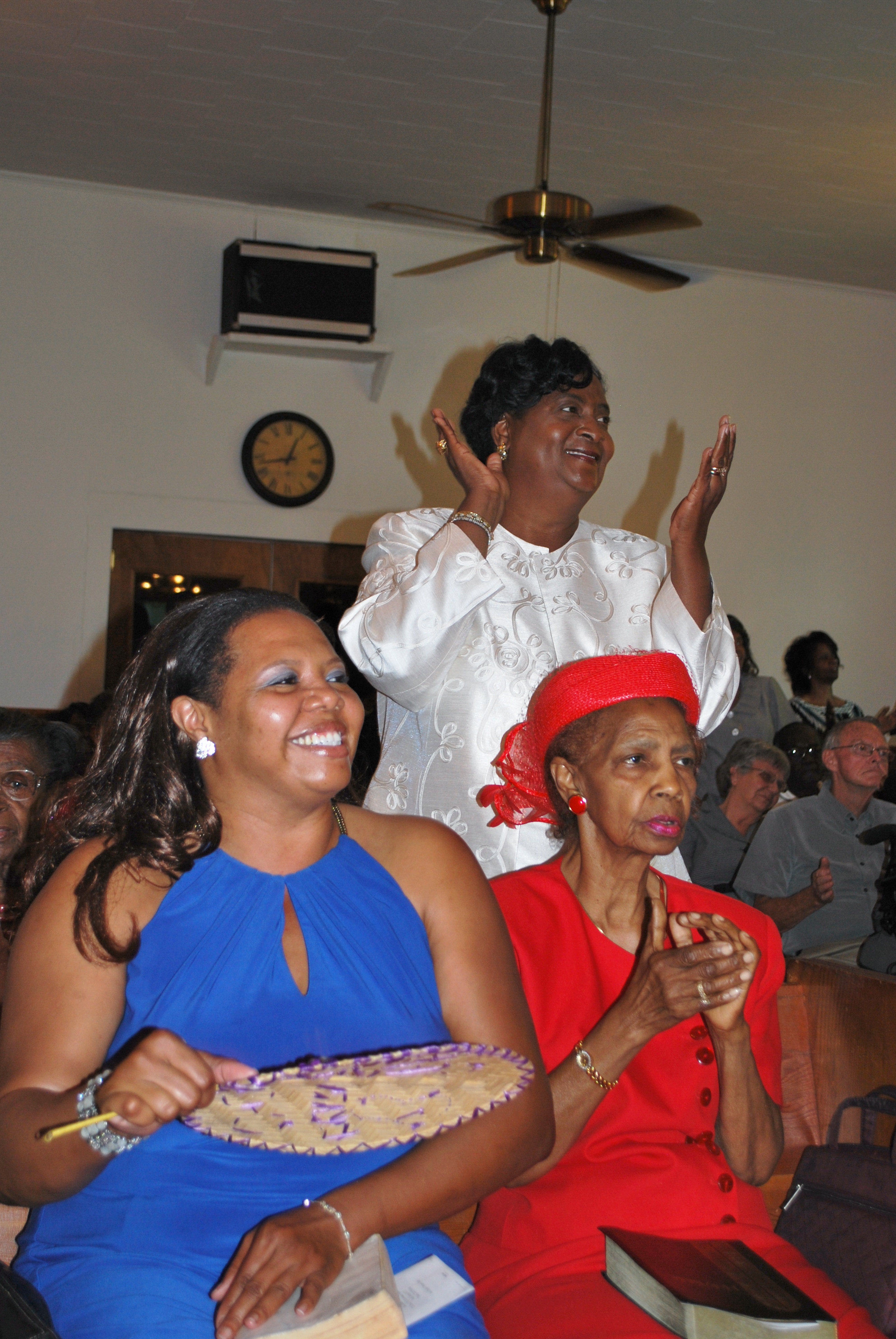 Allene Morgan and unidentified people, Homecoming service, Mt. Calvary Baptist Church, Tate, Georgia, June 2010