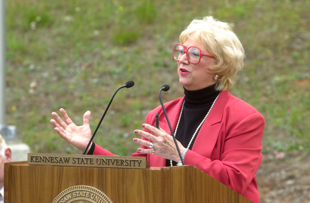 Image of Betty L. Siegel speaking at a KSU groundbreaking, circa 2000s.
