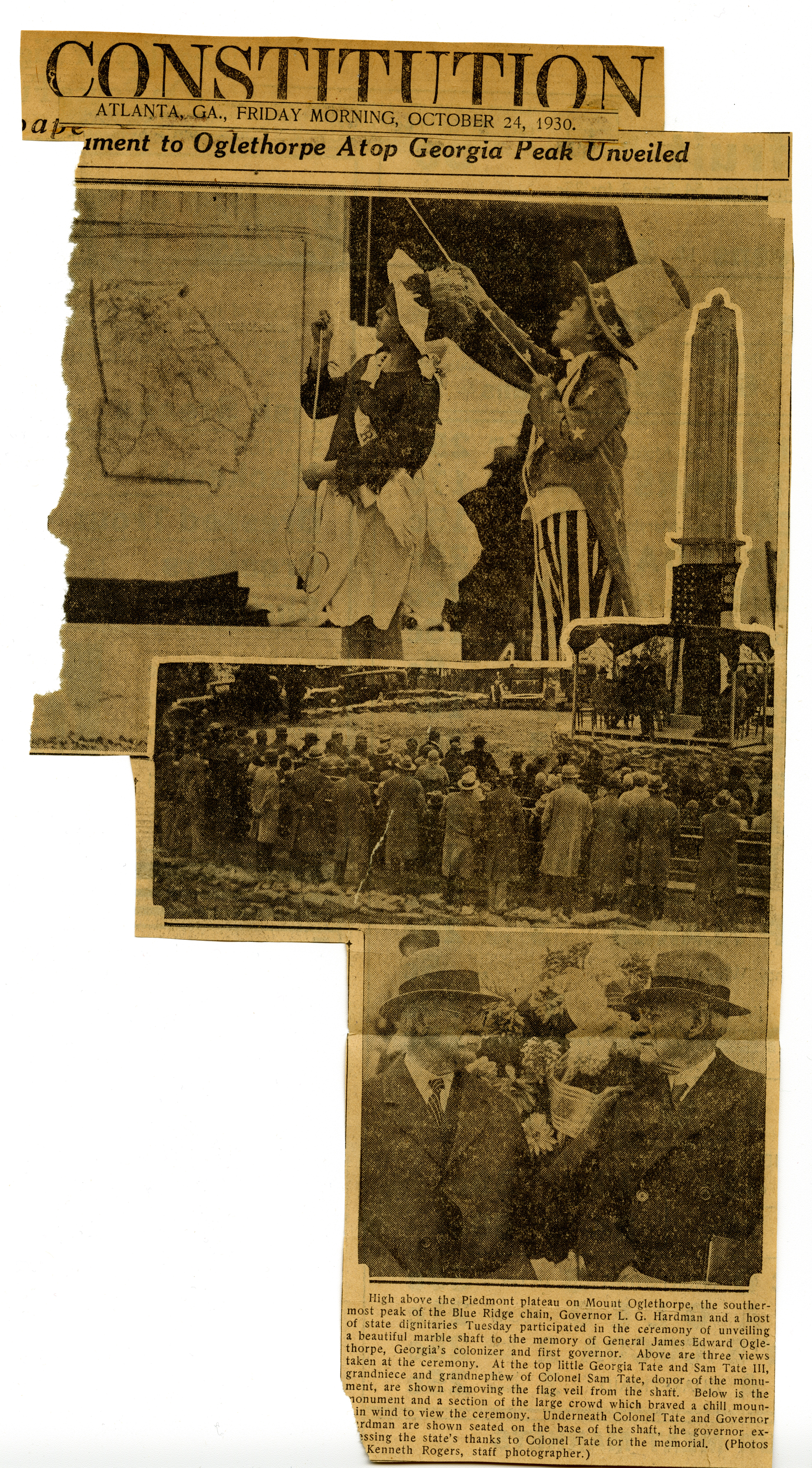 "Monument to Oglethorpe Atop Georgia Peak Unveiled," Atlanta Constitution, October 24, 1930, Sam Tate Springer, 2021, Kennesaw State University