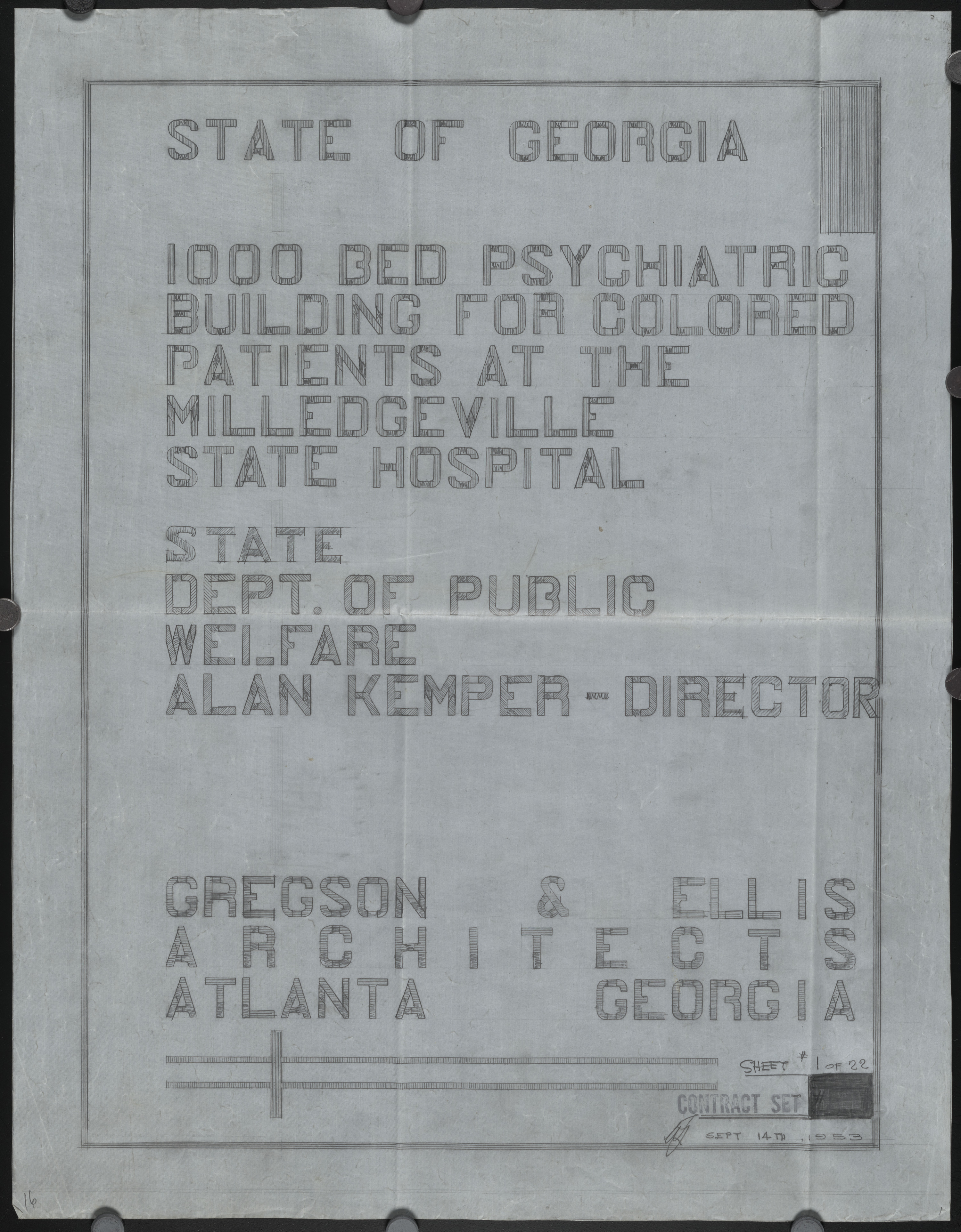 Second Colored Psychiatric Building, Milledgeville. [Cover sheet]