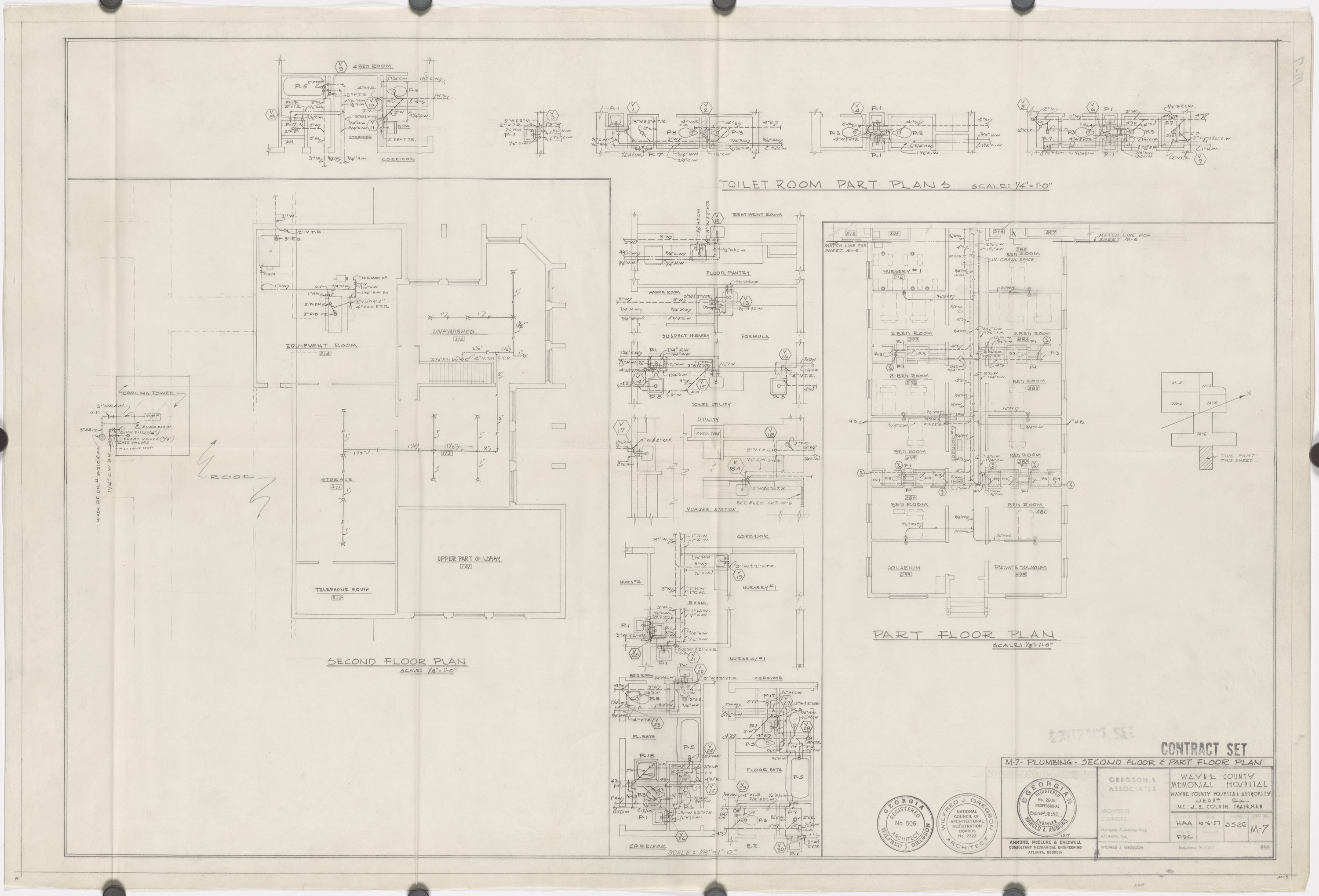 Wayne County Memorial Hospital. M-7 - Plumbing - second floor and part floor plan