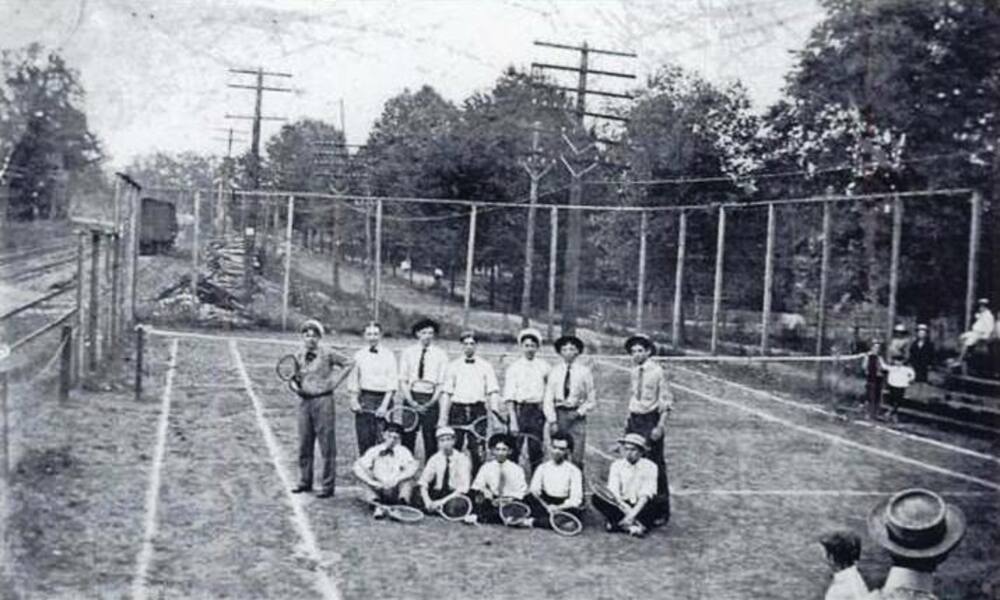 Acworth tennis team, 1907. The tennis court was located between the railroad tracks and Main Street just south of the Acworth Depot.