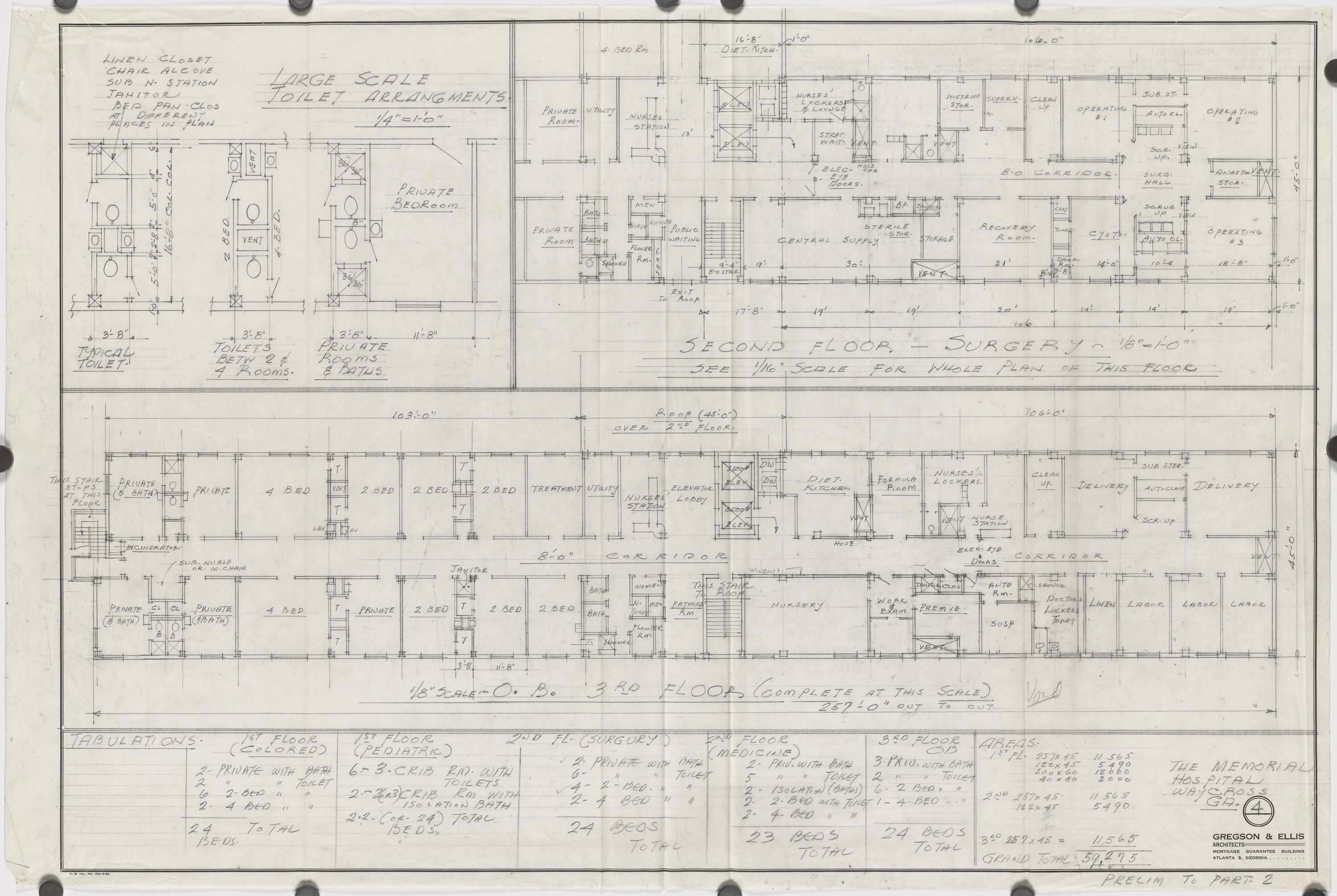Memorial Hospital, Waycross, Georgia. Third floor, second floor, and toilet arrangements