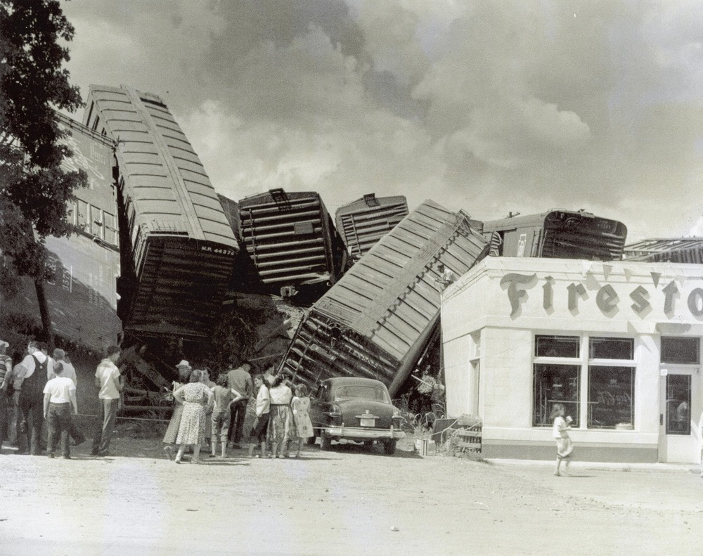 Train derailment, behind Ed Fowler Shell Station, 1958