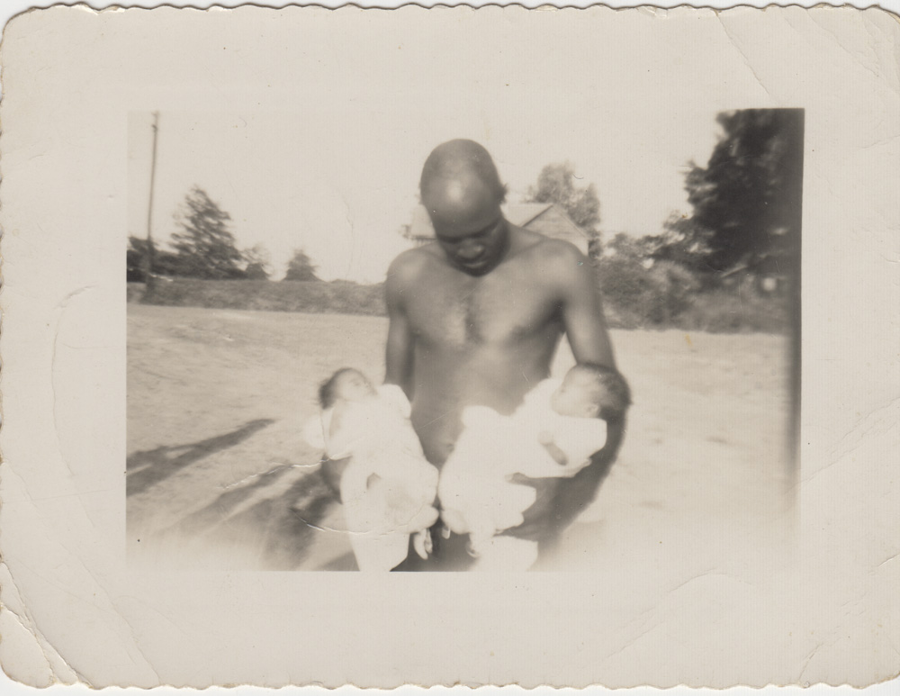 Walter Lee Johnson holding twin daughters Carolyn Johnson and Marilyn Johnson Callahan, School Street housing projects, Acworth, Georgia, 1954, Historic Black Acworth Image Collection, 2020, Houston, Kennesaw State University