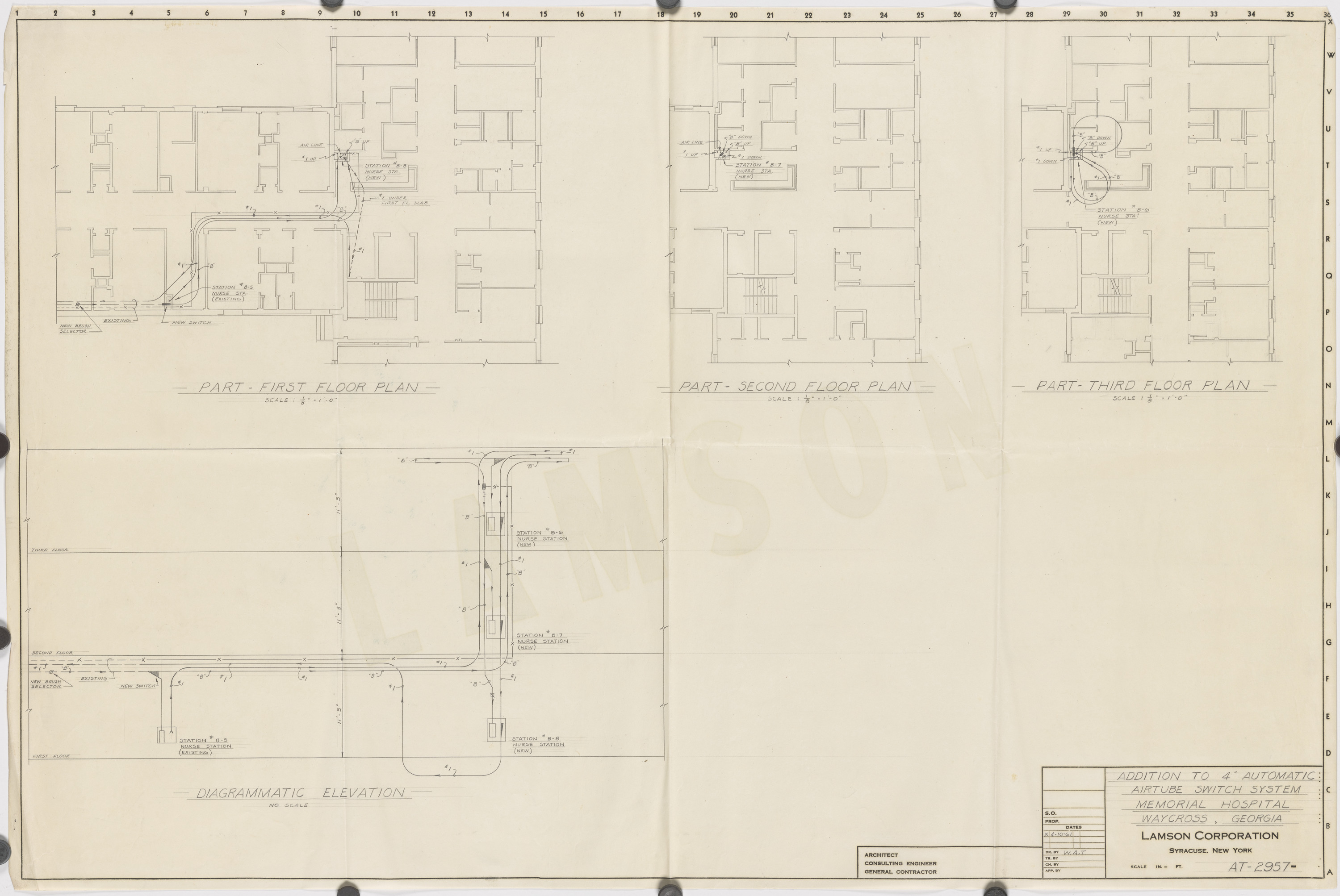 Memorial Hospital, Waycross, Georgia. Addition to 4 inch automatic air tube switch system