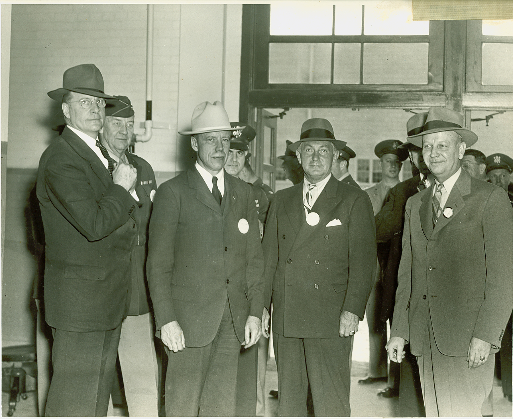 From left: Charles E. Wilson, Office of Defense Mobilization; Robert P. Patterson, Secretary of War; Chip Robert, President, Robert & Company architectural firm; and Omer L. Woodson, Bell Plant general manager