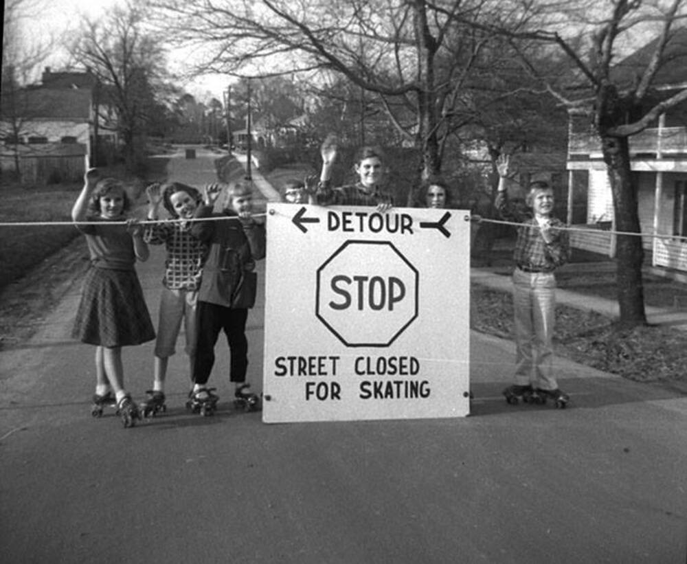 Skating on Academy Street, Save Acworth History Foundation collection, SC/A/003, Kennesaw State University Archives.