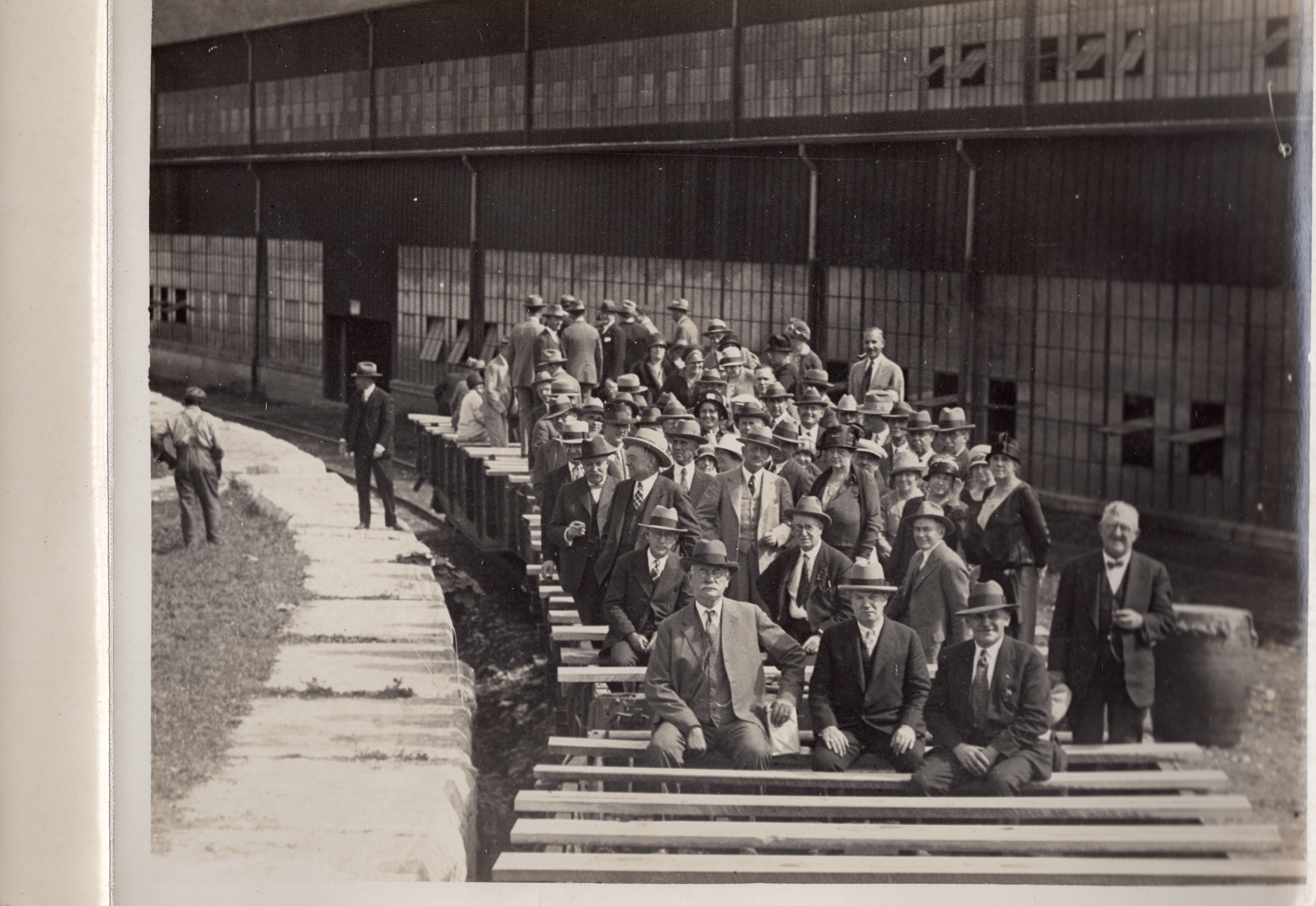 Sam Tate (sitting front row left) taking unidentified people on tour of the Georgia Marble Company, Tate, Georgia, ca. 1920s