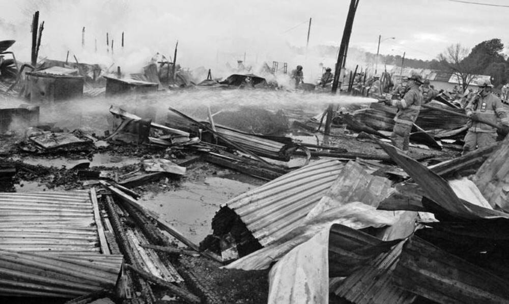 Acworth flea market building destroyed by fire, 2009-12-20, Save Acworth History Foundation collection, SC/A/003, Kennesaw State University Archives.