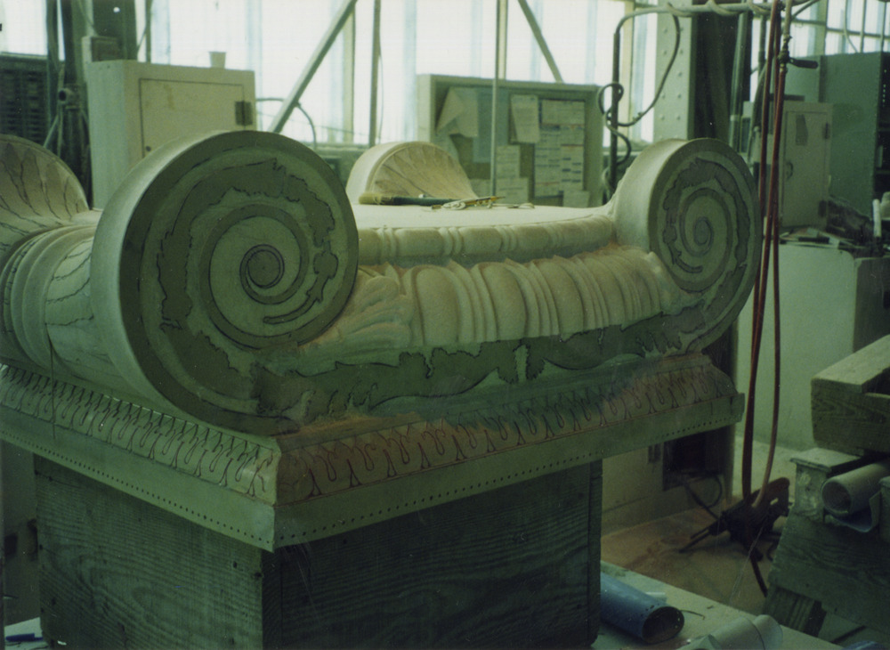 Marble Ionic capital in process for Allen Memorial Medical Library, Cleveland, Ohio