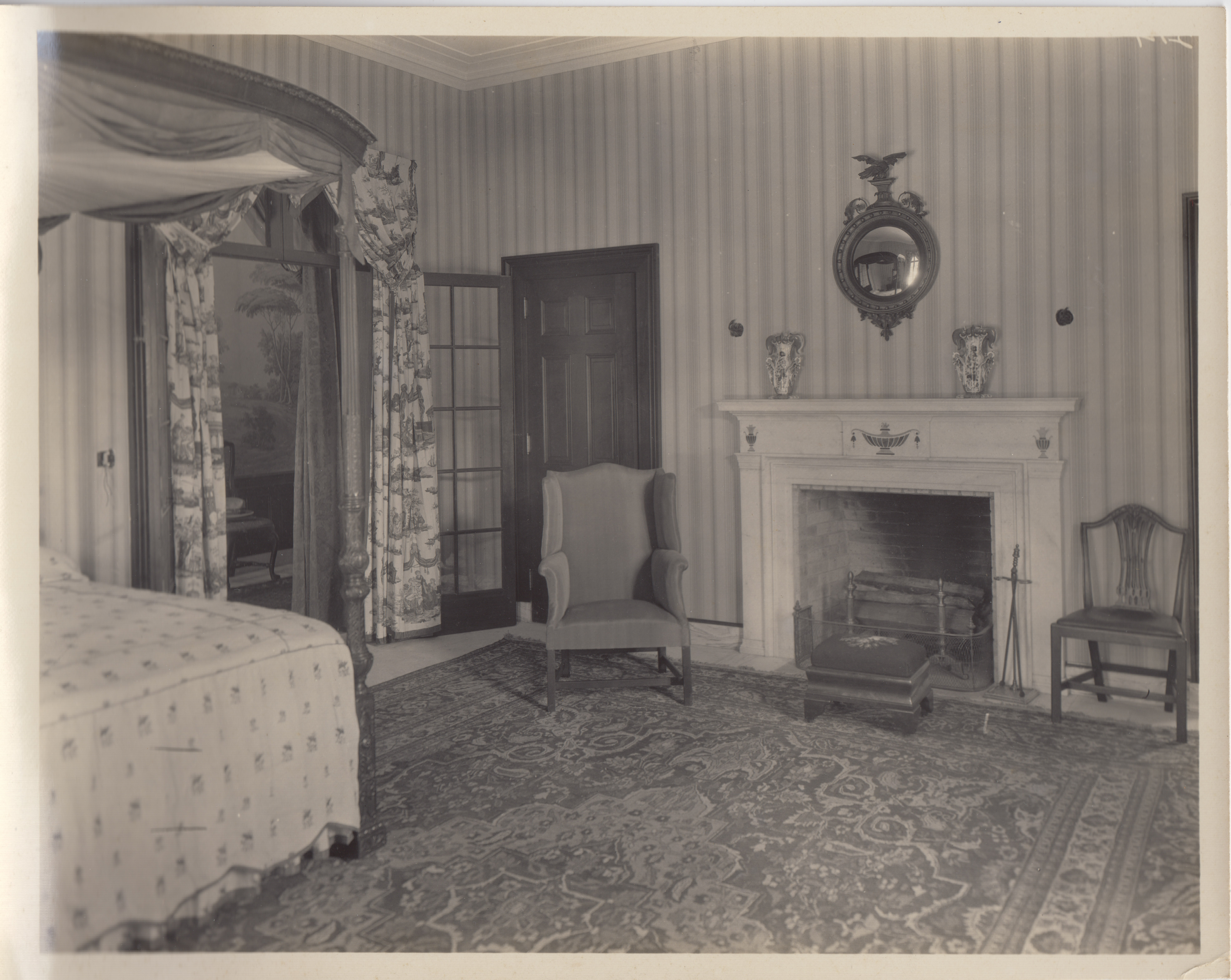 Sam Tate House or the "Pink House" (bedroom), completed in 1926 using Etowah pink marble quarried at the Georgia Marble Company south of the home, Tate, Georgia, ca. 1920s