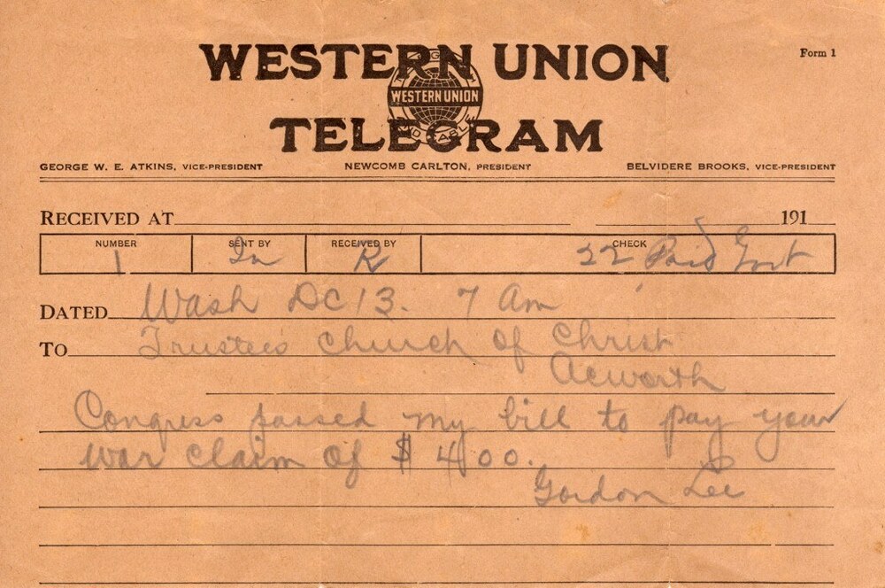 Church of Christ of Acworth claim for Civil War destruction, Save Acworth History Foundation collection, SC/A/003, Kennesaw State University Archives.