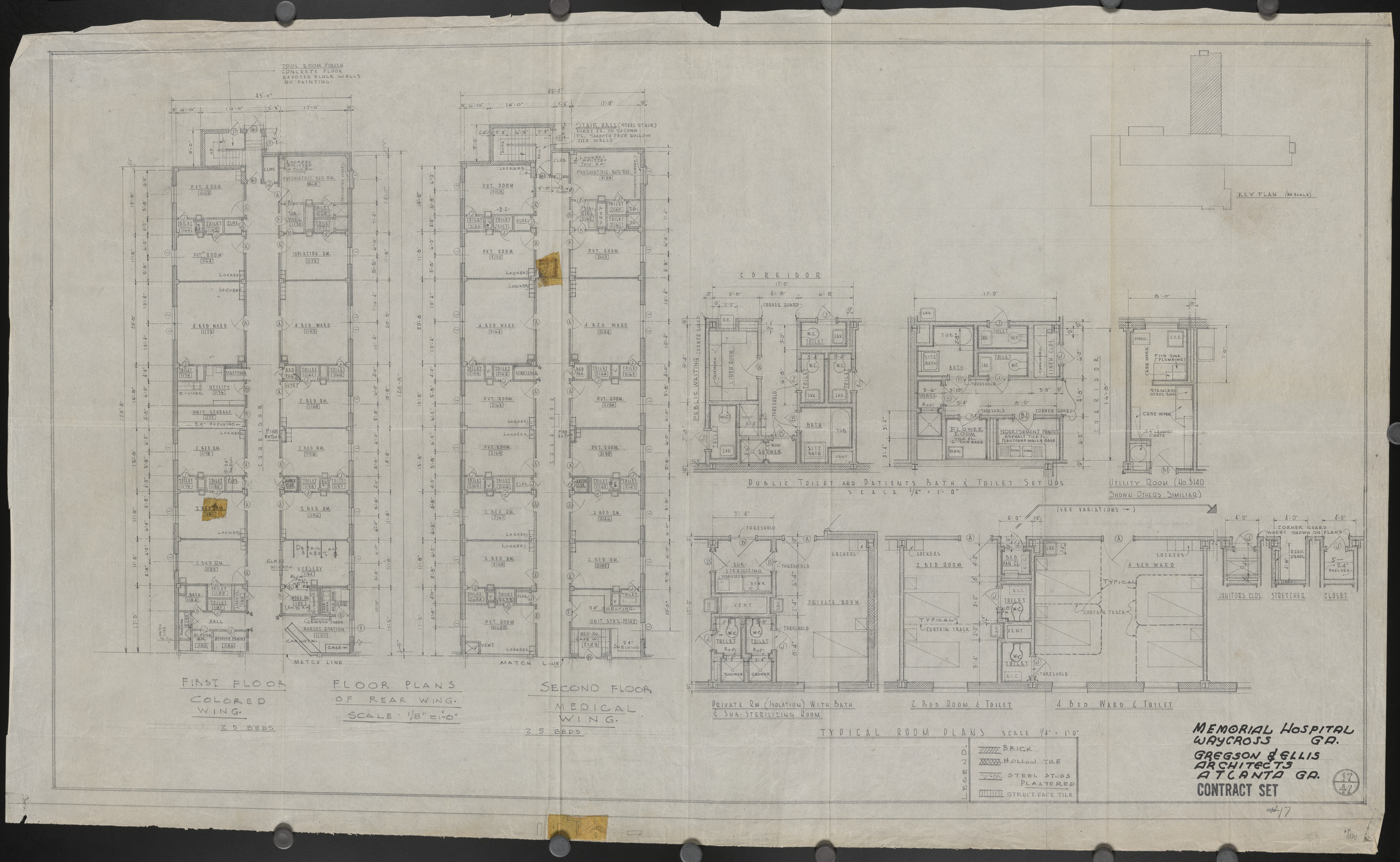 Memorial Hospital, Waycross, Georgia. Floor plans of rear wing