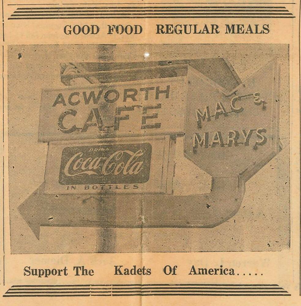 Acworth Cafe advertisement, Save Acworth History Foundation collection, SC/A/003, Kennesaw State University Archives.
