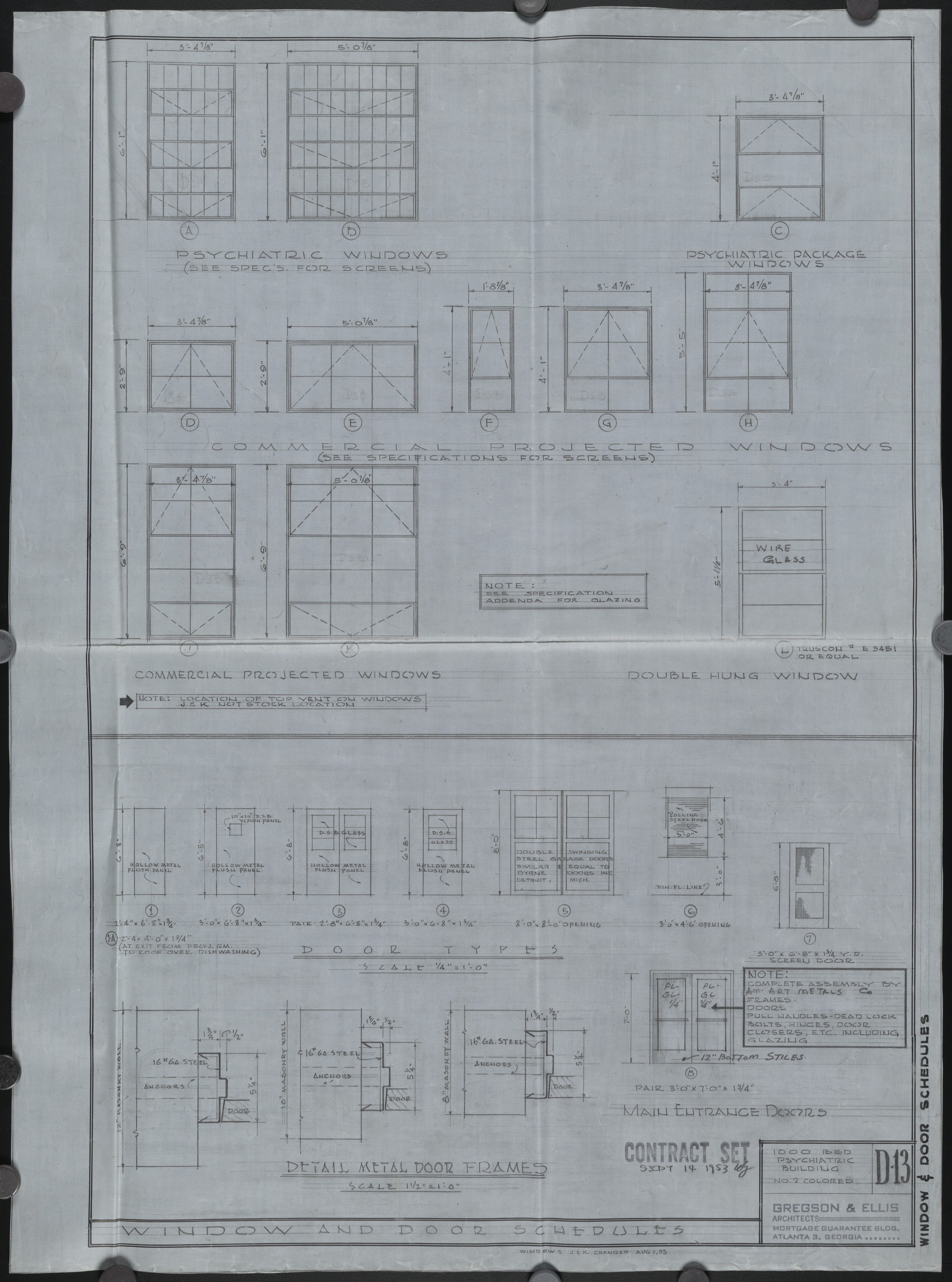 Second Colored Psychiatric Building, Milledgeville. Window and door schedules