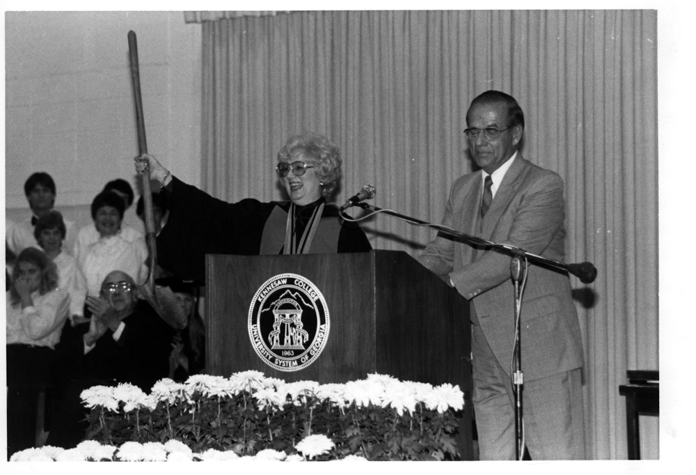 Betty L. Siegel speaks at Kennesaw College Founders Day, circa 1980s, Betty L. Siegel. photographs and images, 1973-2017, KSU/03/03/016, Kennesaw State University Archives.