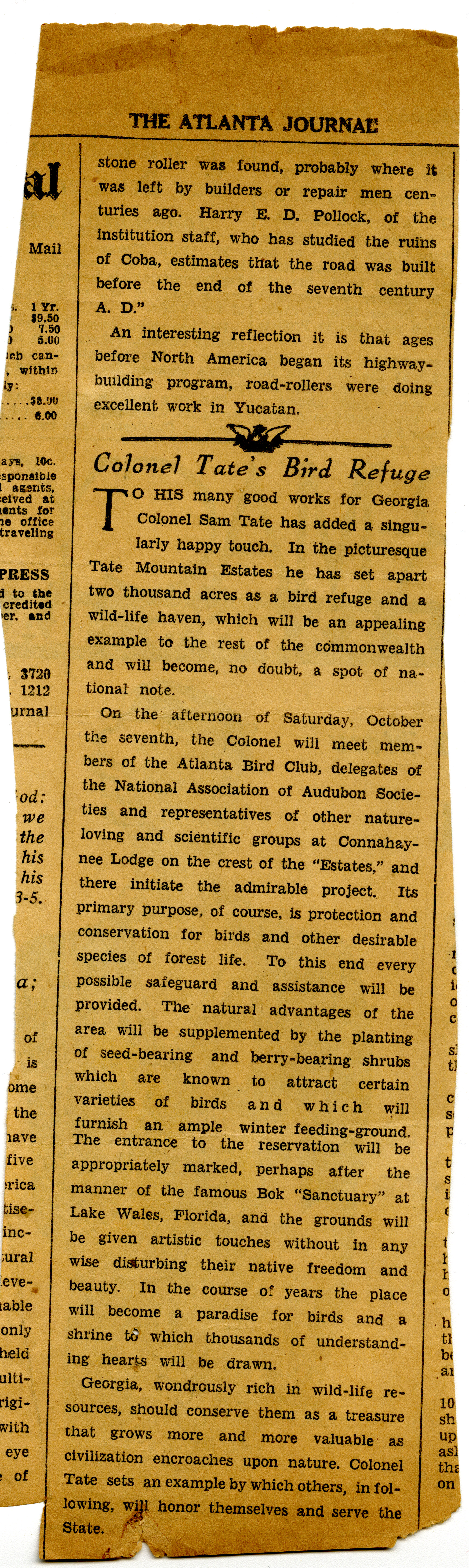 "Colonel Tate's Bird Refuge," Atlanta Journal