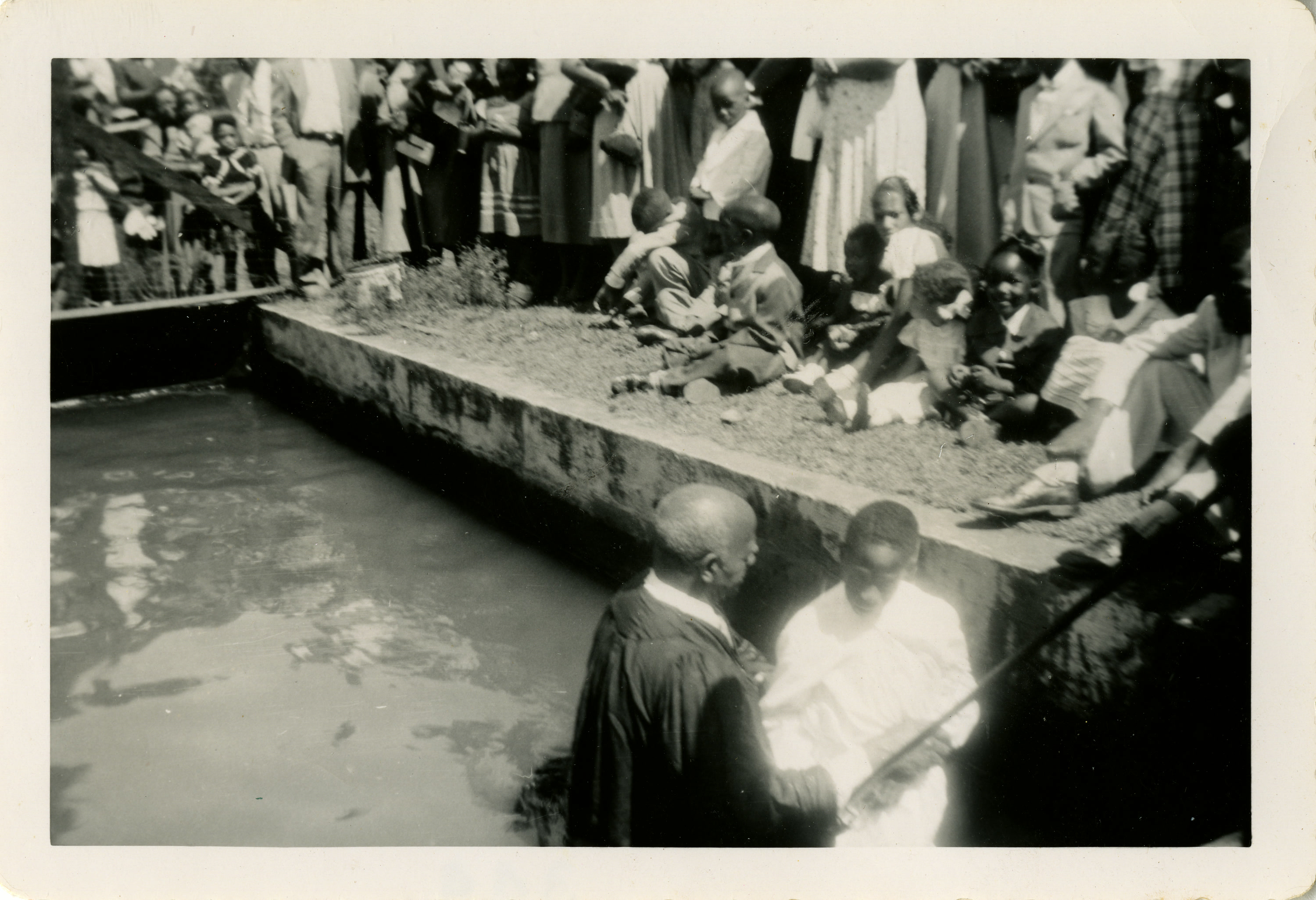 An outdoor baptism at Pleasant Grove Missionary Baptist Church