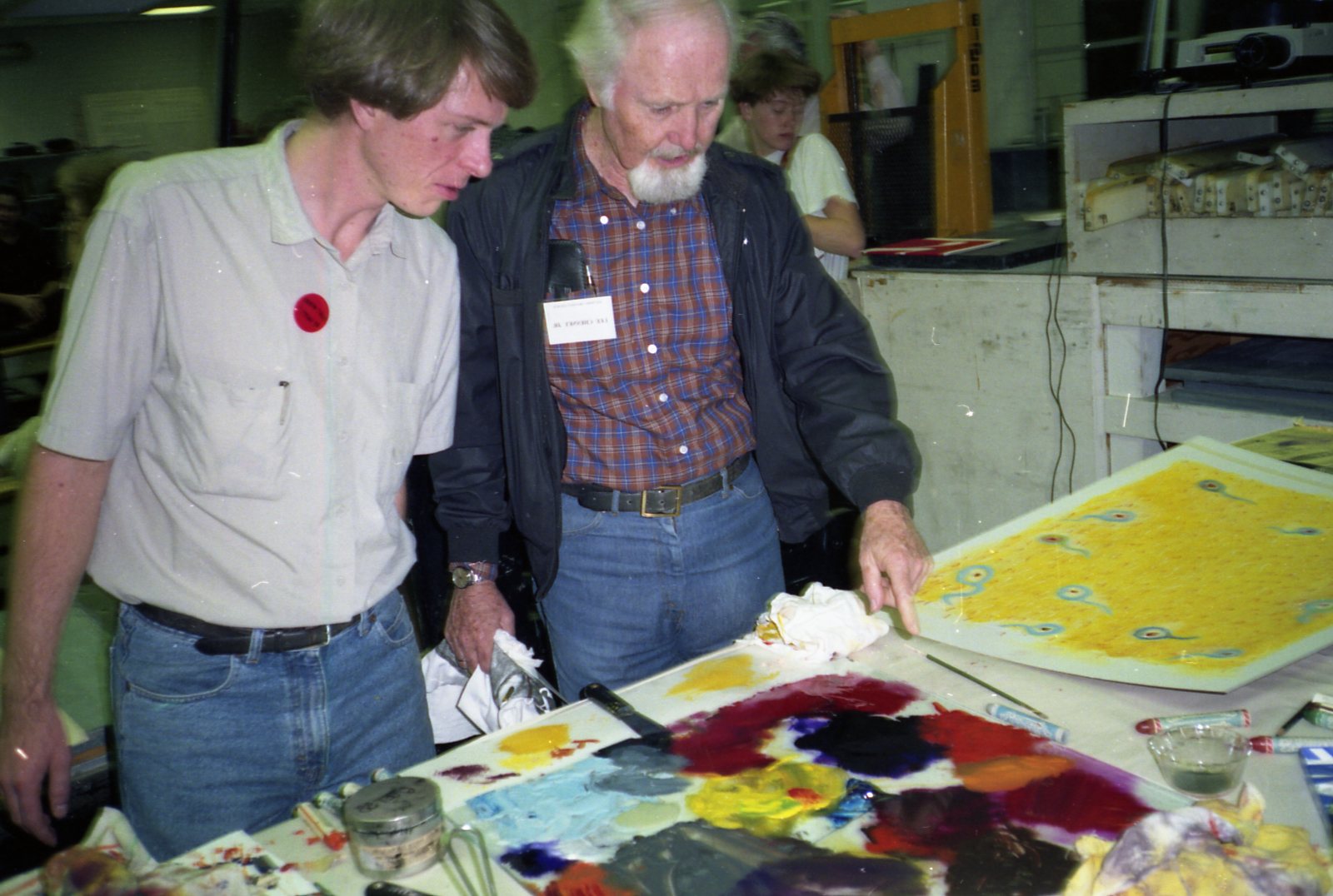 This photo shows two men enjoying art at an SGC Conference. This photo was most likely taken at the 1988 conference in Greenville, SC or the 1989 conference in Austin, TX.