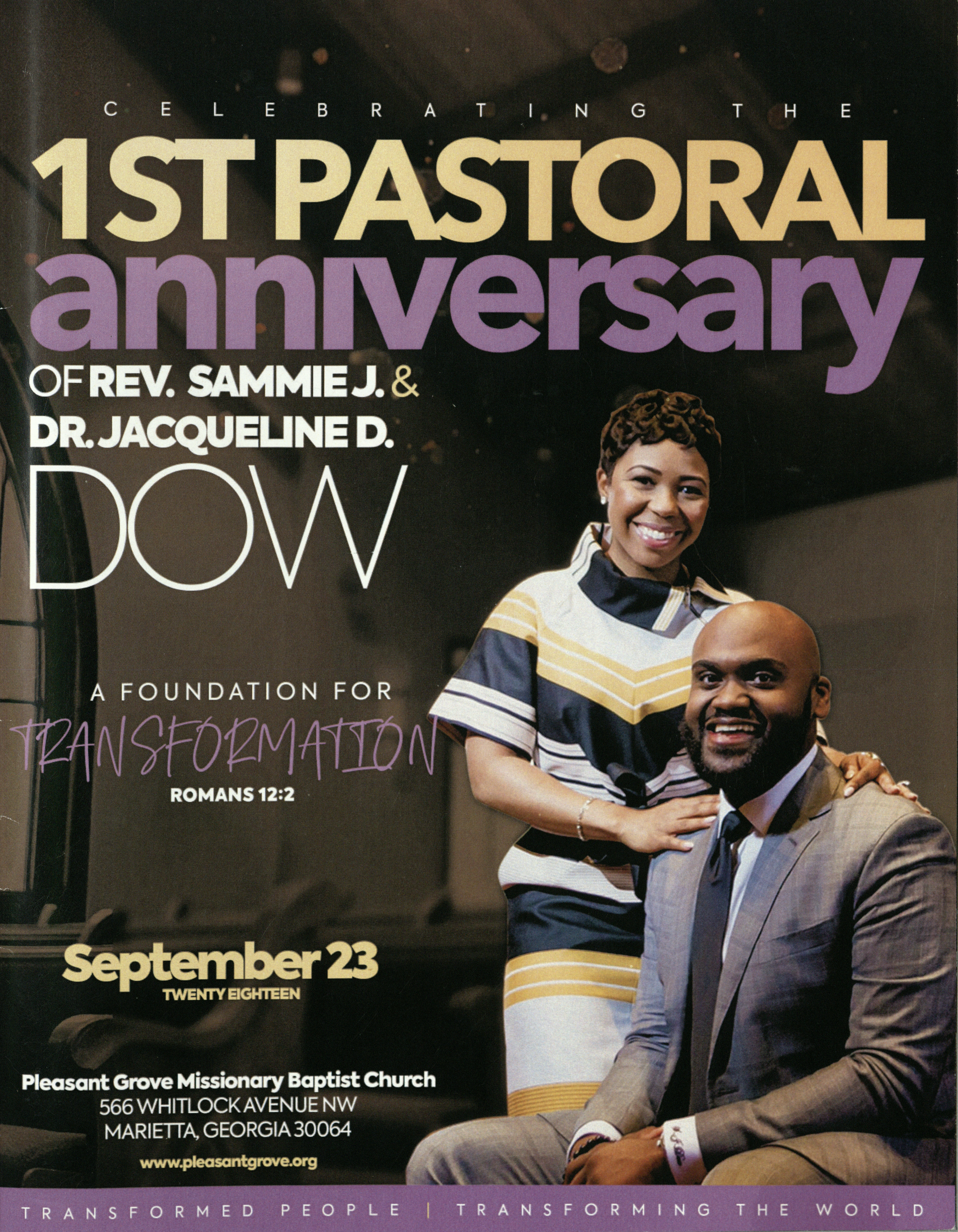 Front cover of first pastoral anniversary program for Reverend Dr. Sammie J. Dow and First Lady Jacqueline Dow