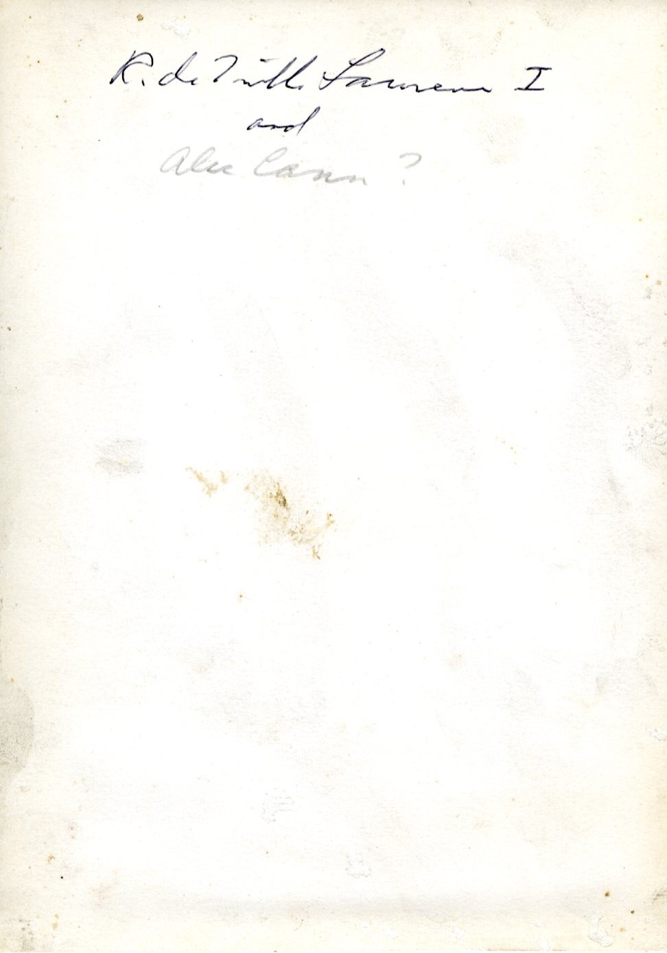 This photo shows Robert deTreville Lawrence I (left) and a child relative (right). The name of the child is unknown; the back of the photo suggests that the child's name may be Alex. The photo is undated but was probably taken circa 1920.