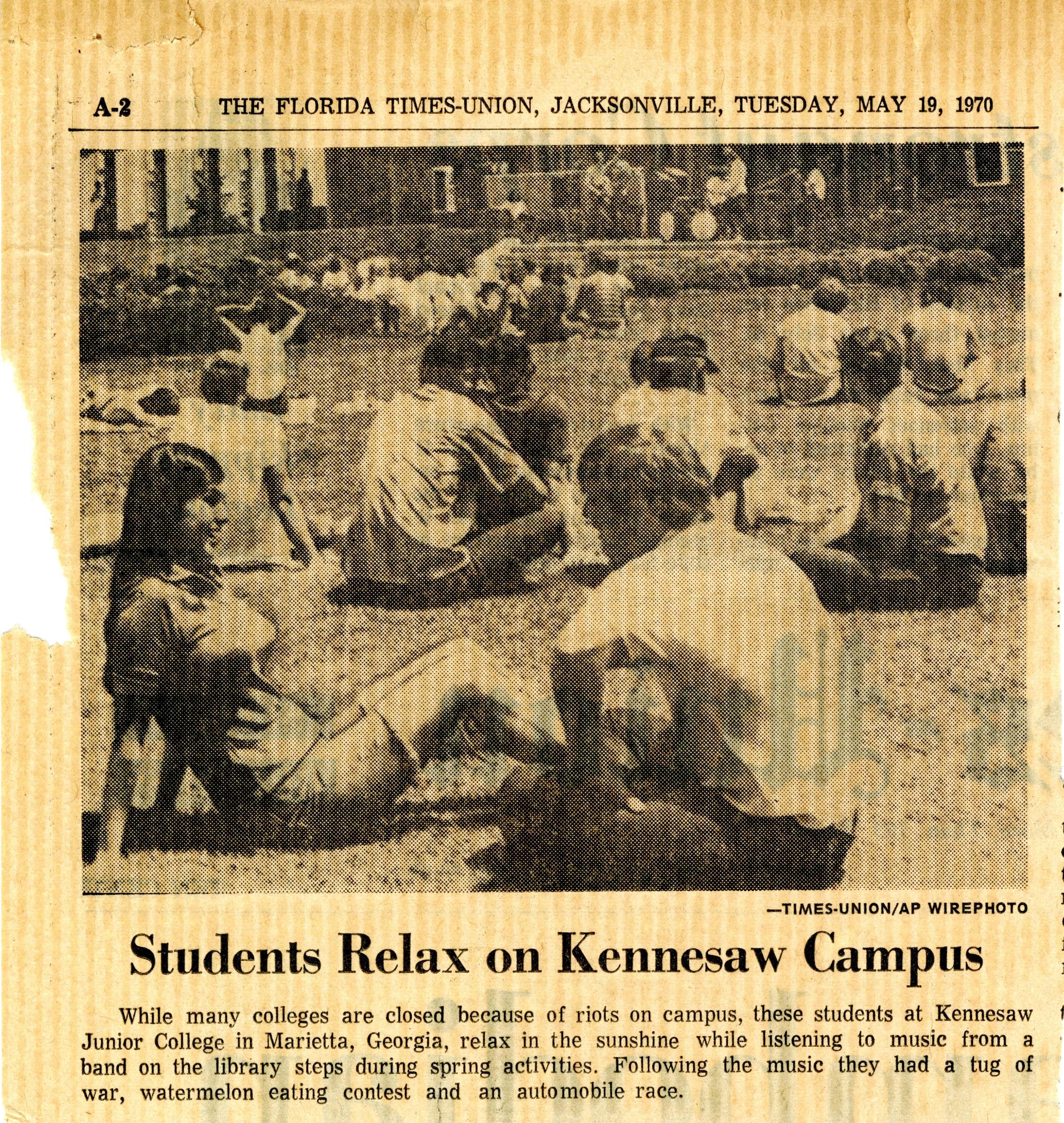 "Students Relax on Kennesaw Campus," The Florida Times-Union, Jacksonville, Florida, May 19, 1970
