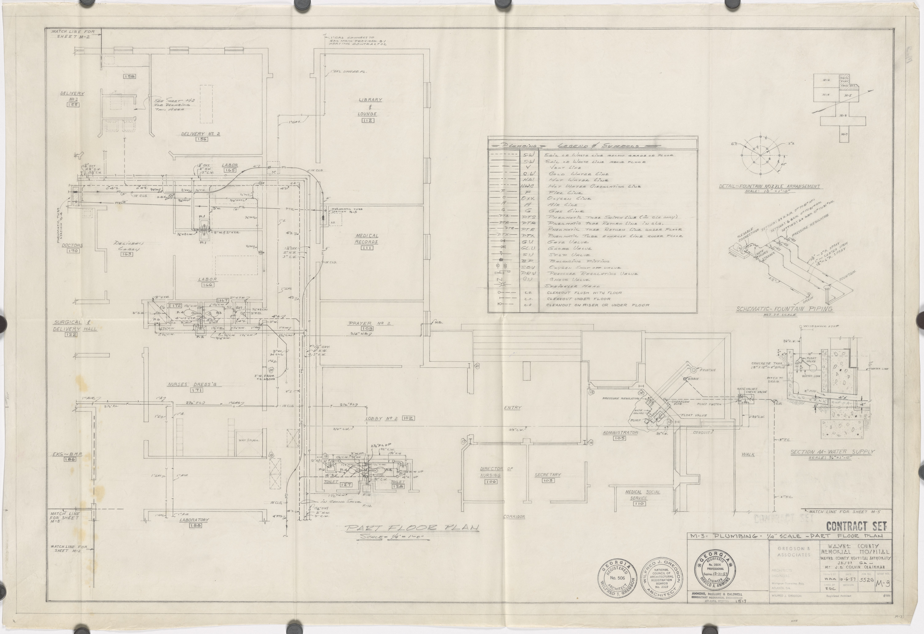 Wayne County Memorial Hospital. M-3 - Plumbing - 1/4 inch scale - part floor plan