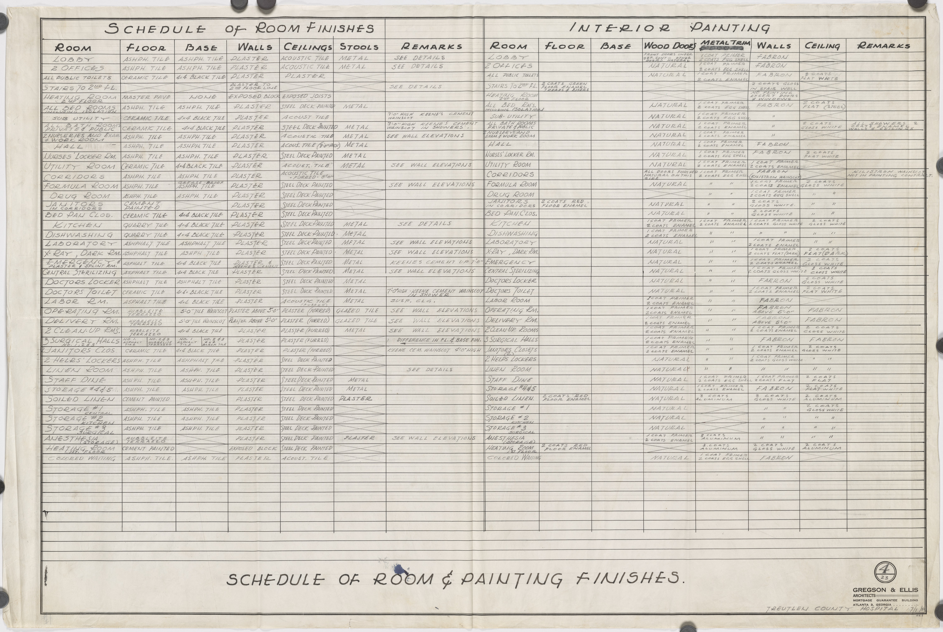 Treutlen County Hospital. Schedule of room and painting finishes