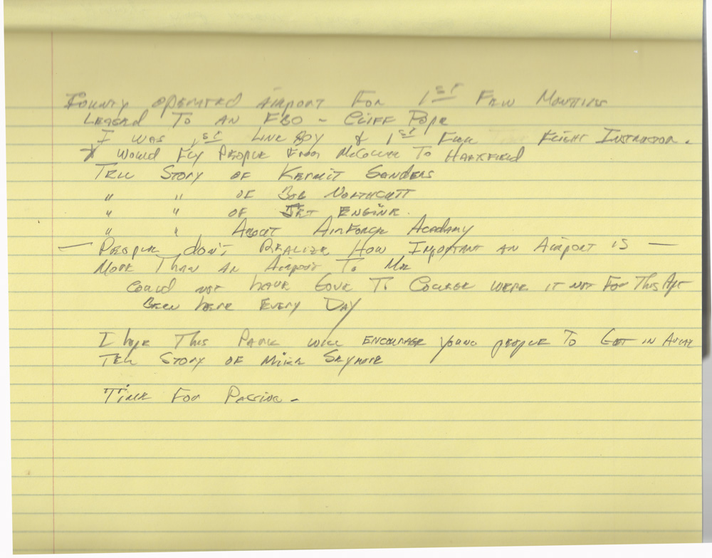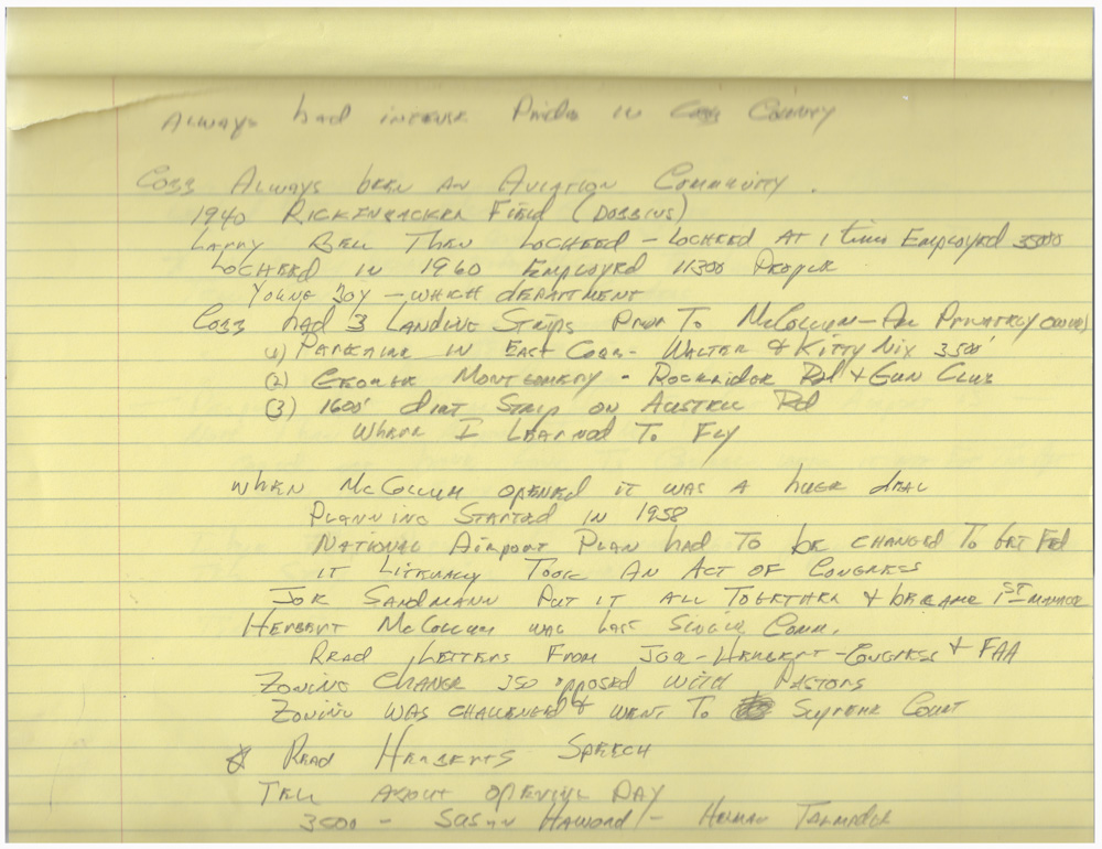 Notes on McCollum Airport (Cobb County International Airport) created by aviator and real estate developer Larry Brantley Thompson, ca. 2010s, Larry Brantley Thompson Collection, 2020, Kennesaw State University