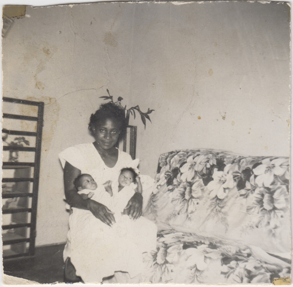 Lorene Johnson holding twin daughters Carolyn Johnson and Marilyn Johnson Callahan, Acworth, Georgia, 1954, Historic Black Acworth Image Collection, 2020, Jackson, Kennesaw State University