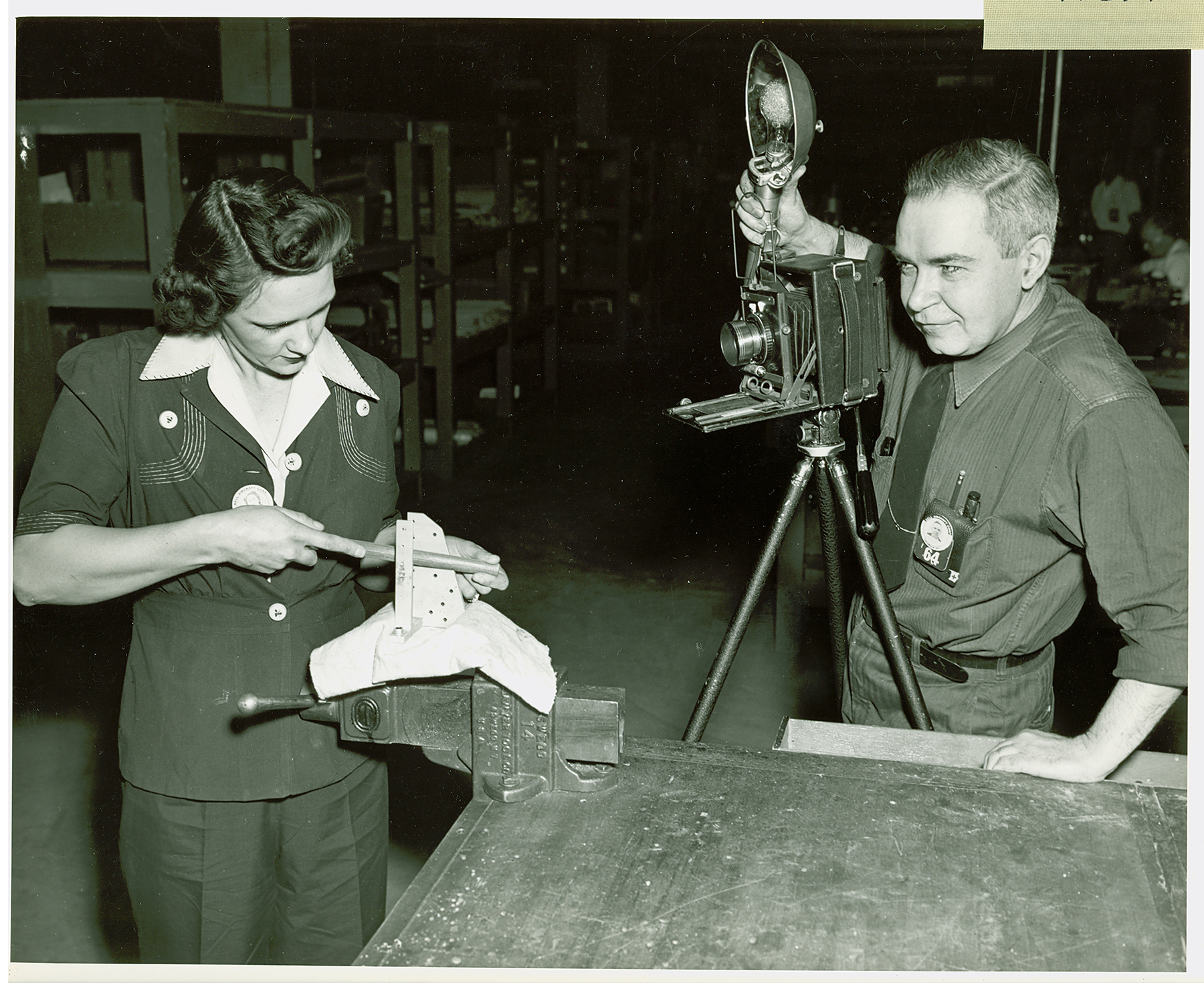 Photographer and female factory employee
