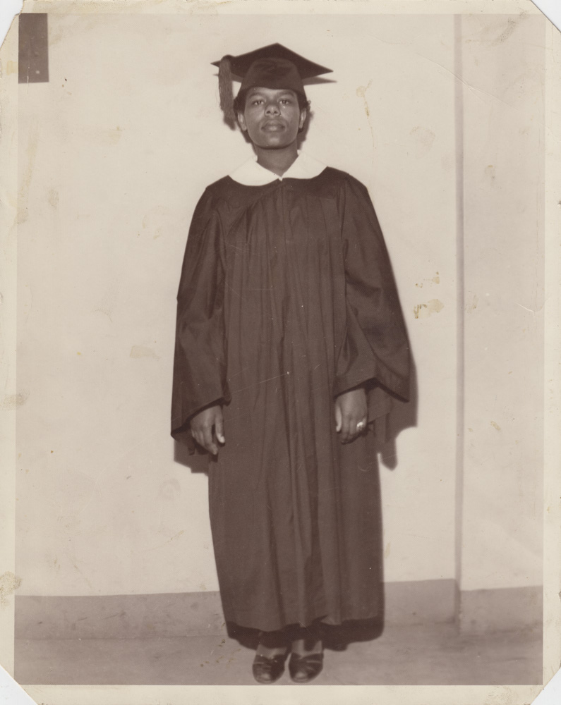 Graduation portrait of Jennie Hill Gresham, Lemon Street High School, Marietta, Georgia, 1949.