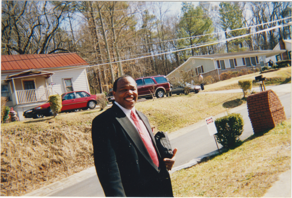 Larry Griffin, unidentified person, and Claude Johnson, Zion Hill Missionary Baptist Church, Taylor Street, Acworth, Georgia, 2005, Historic Black Acworth Image Collection, 2020, Beasley, Kennesaw State University