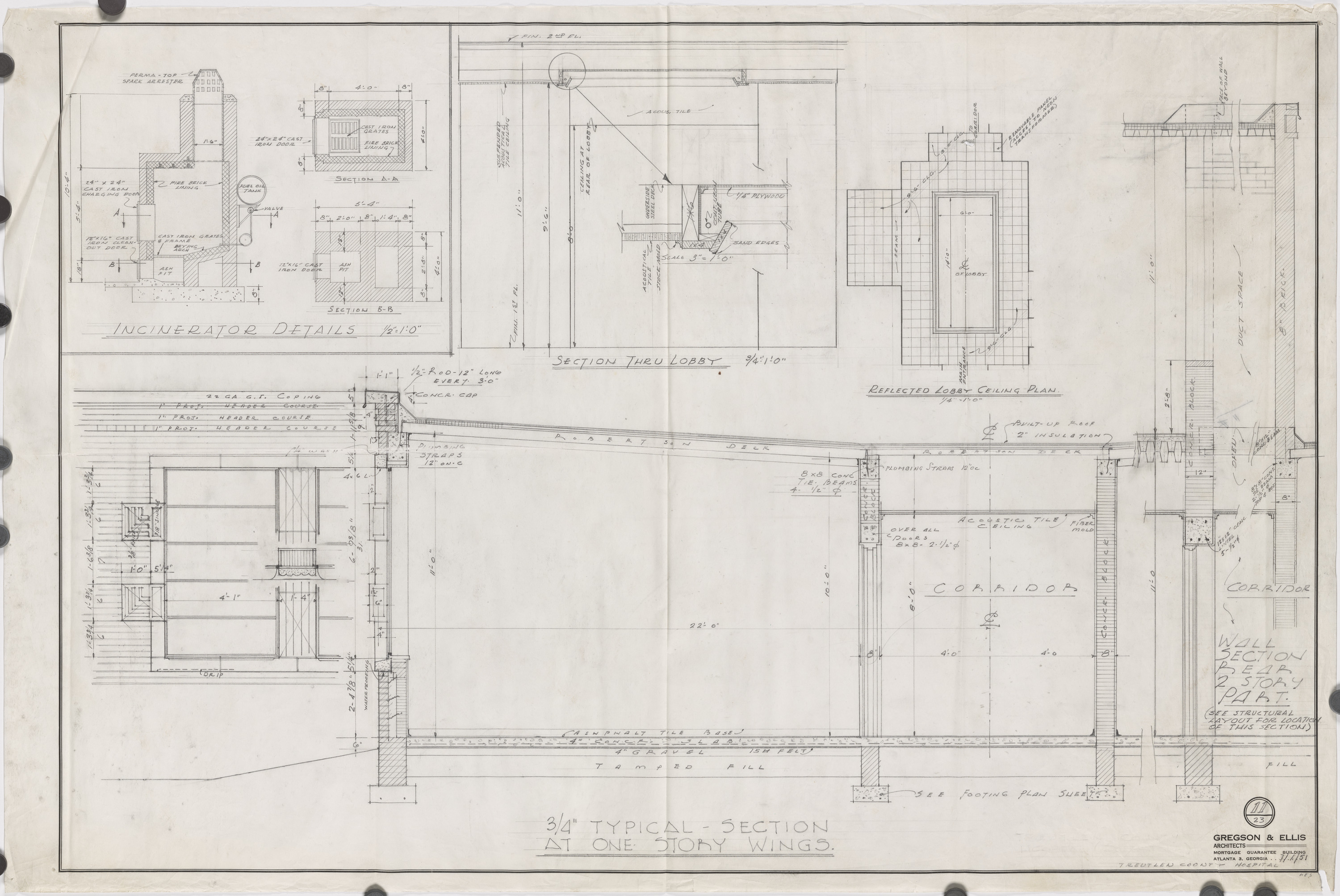 Treutlen County Hospital. 3/4 inch typical section at one story wings