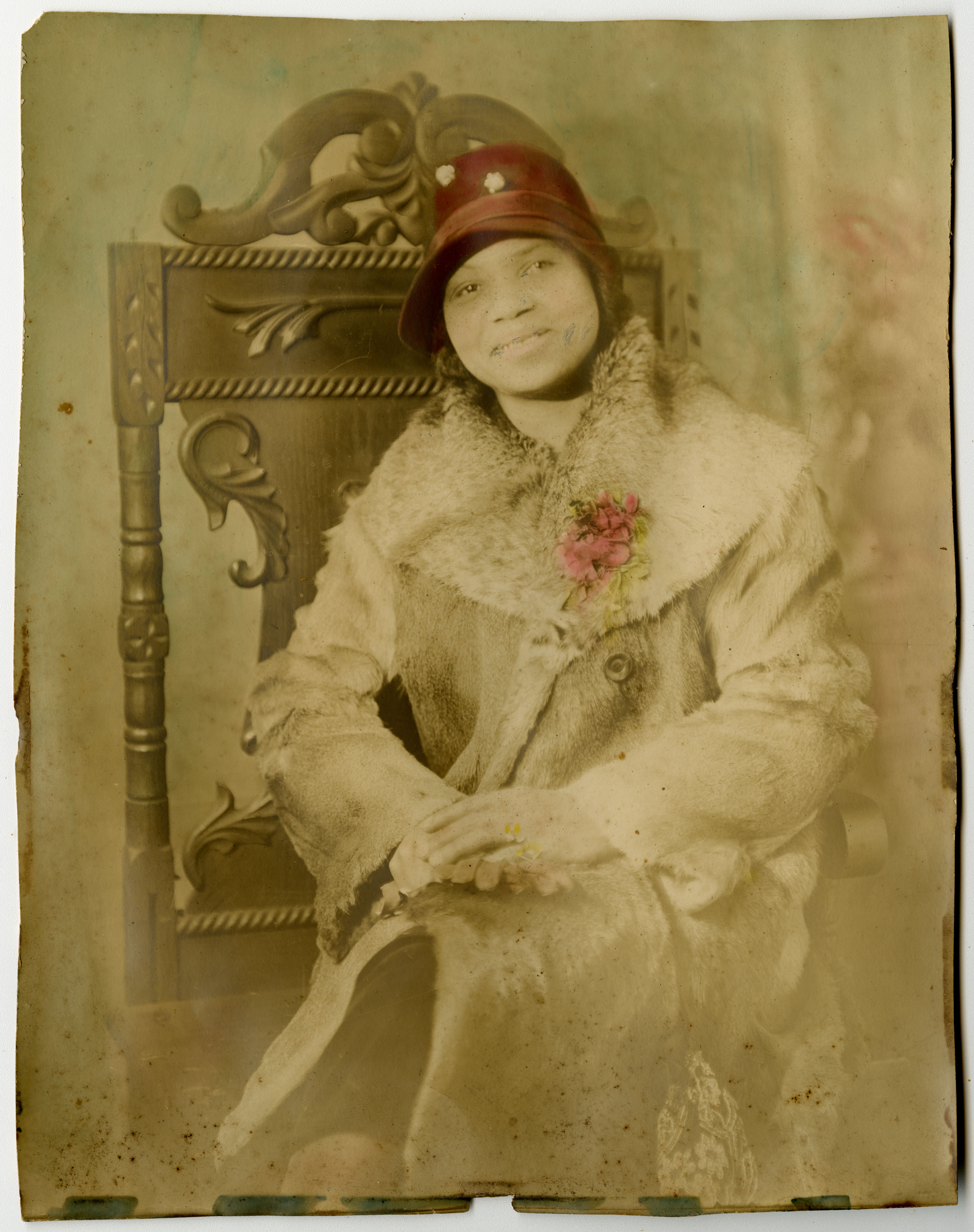 Hand colored portrait of Florine Loyal Lockhart. Photograph likely done through the gelatin silver printing process.