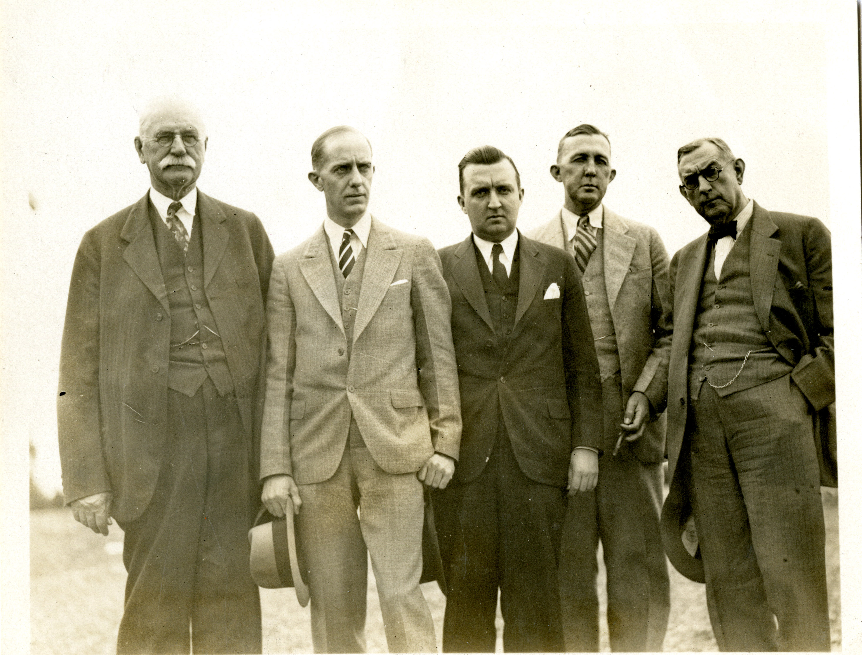 Sam Tate (left), unidentfied people, Luke Tate (second from right), unidentified person, ca. 1920s