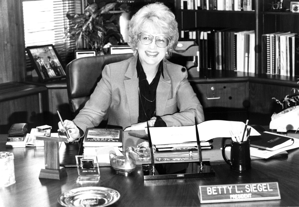 Portrait of Betty L. Siegel at her desk, circa 1981