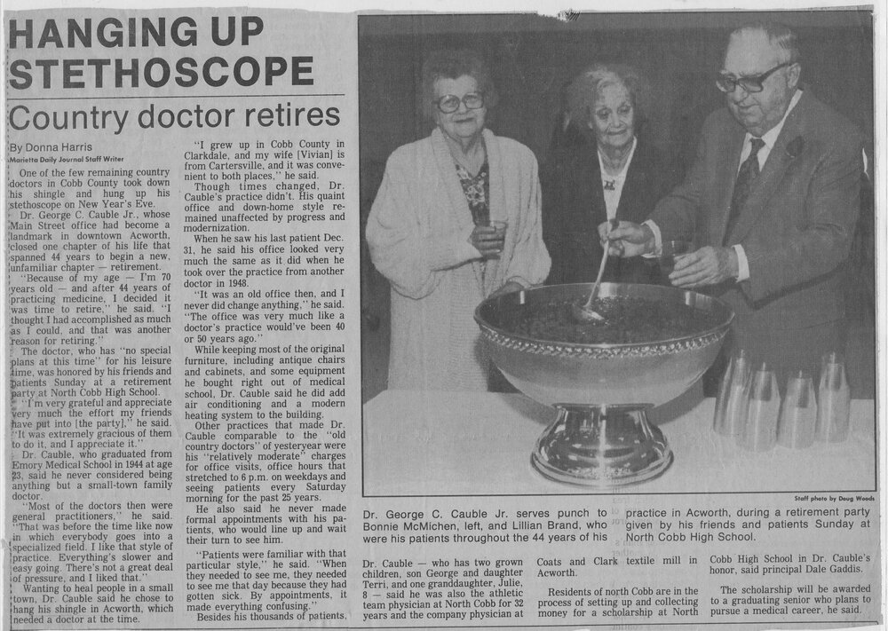 Dr. George Cauble, Jr. retirement, Save Acworth History Foundation collection, SC/A/003, Kennesaw State University Archives.