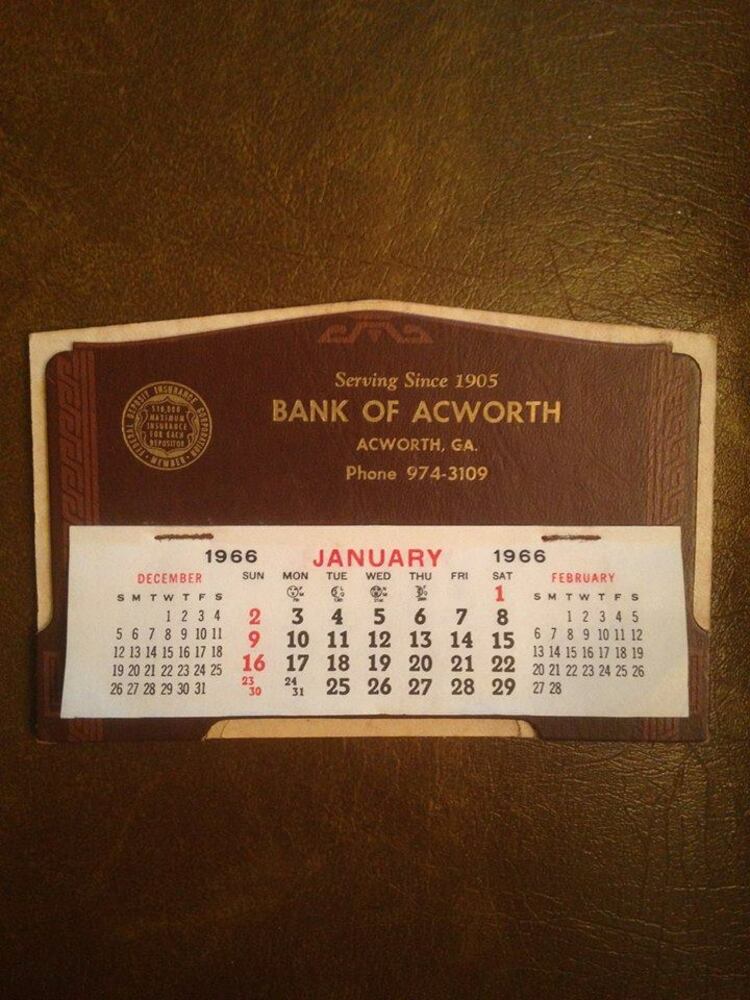 Bank of Acworth Calendar, 1966-01, Save Acworth History Foundation collection, SC/A/003, Kennesaw State University Archives.
